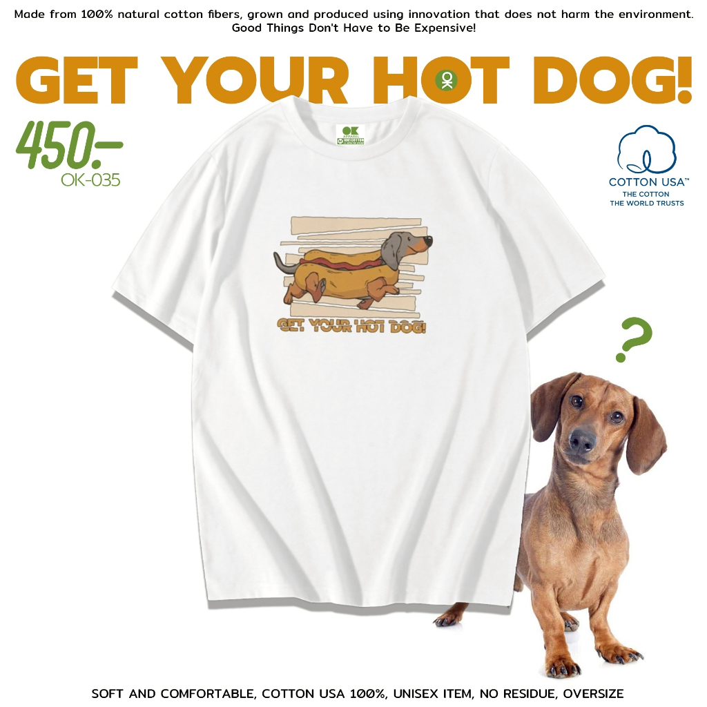OK Apparel เสื้อยืดคอกลมแขนสั้น ลายหมา Get Your Hot Dog Oversize Cotton ⚡️USAคุ้มสุด!⚡️