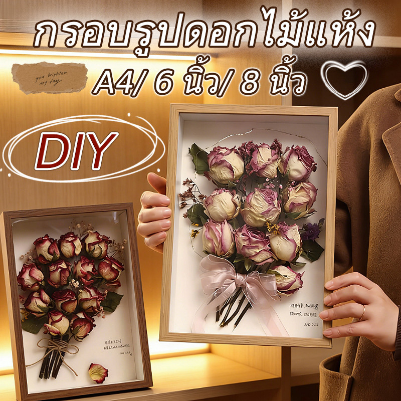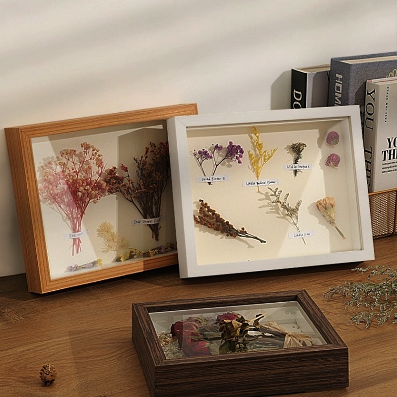 กรอบรูปดอก ไม้แห้งDIYกลวง โต๊ะกรอบรูปดอกไม้สำหรับเก็บดอกไม้เรียบ สามมิติติดผนัง กล่องใส่ดอกไม้