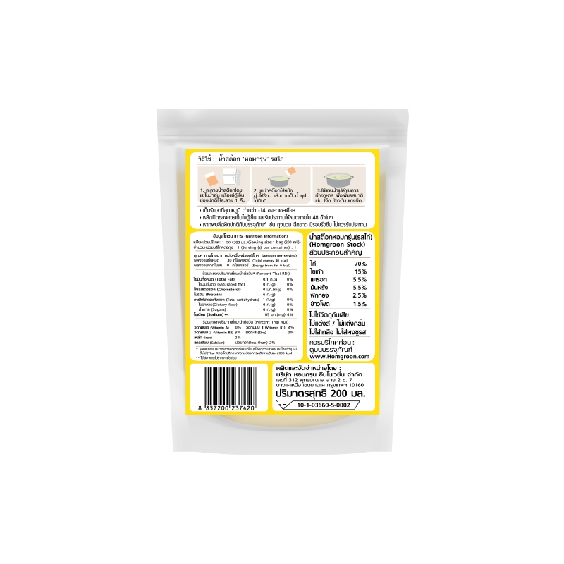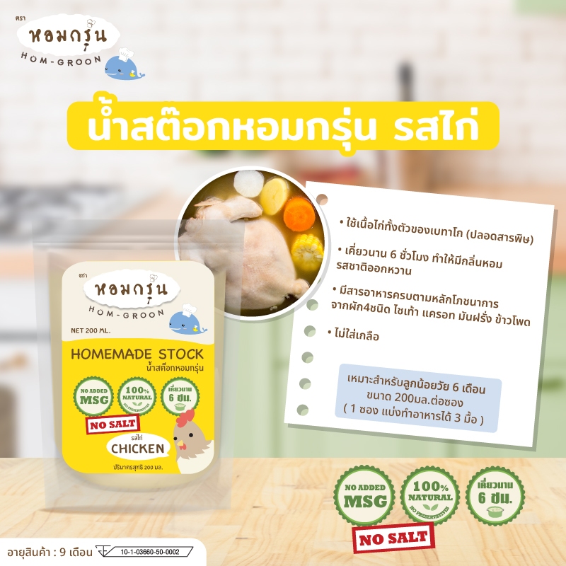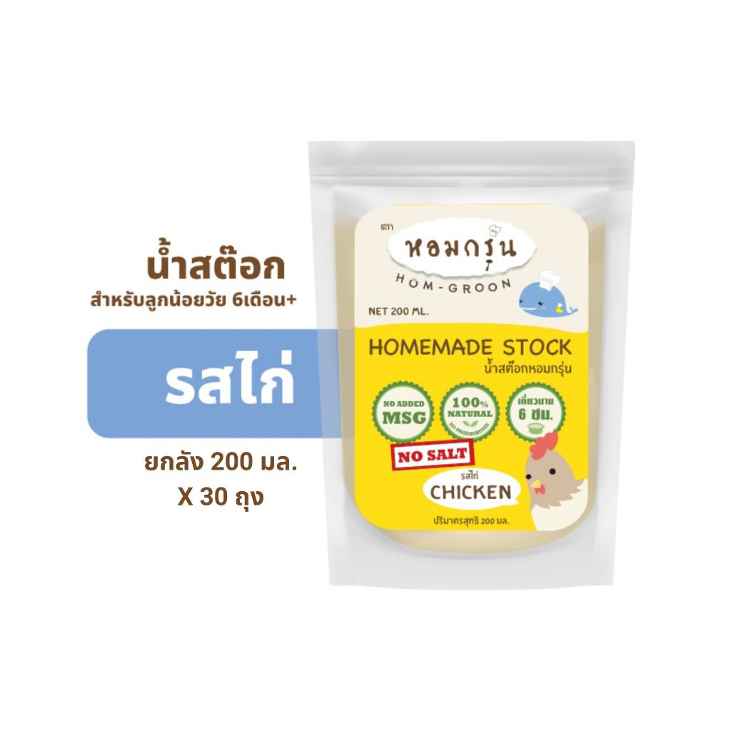 [ส่งฟรี! ยกลัง 30 ถุง รสไก่หอมอร่อย] Homgroon หอมกรุ่น น้ำสต๊อกสำหรับเด็ก 6 เดือนขึ้นไป (200 มล. X 30 ถุง)