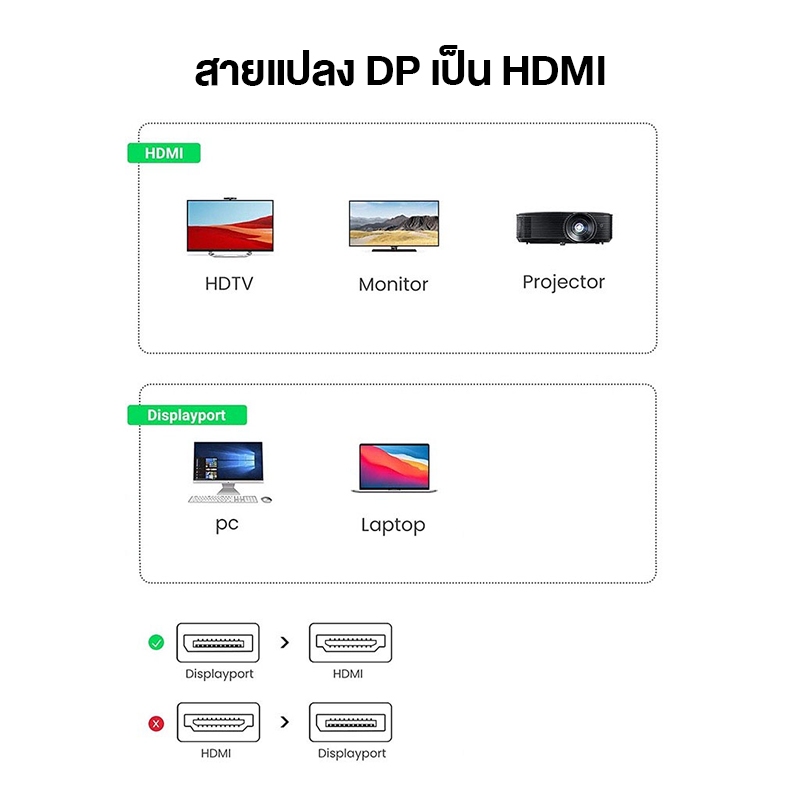 ⚡ส่งจาก กทม⚡Jasoz DP to HDMI Cable 4K DP สายเคเบิ้ล แปลง DP ถึง HDMI For Computer To Laptop PS4/5