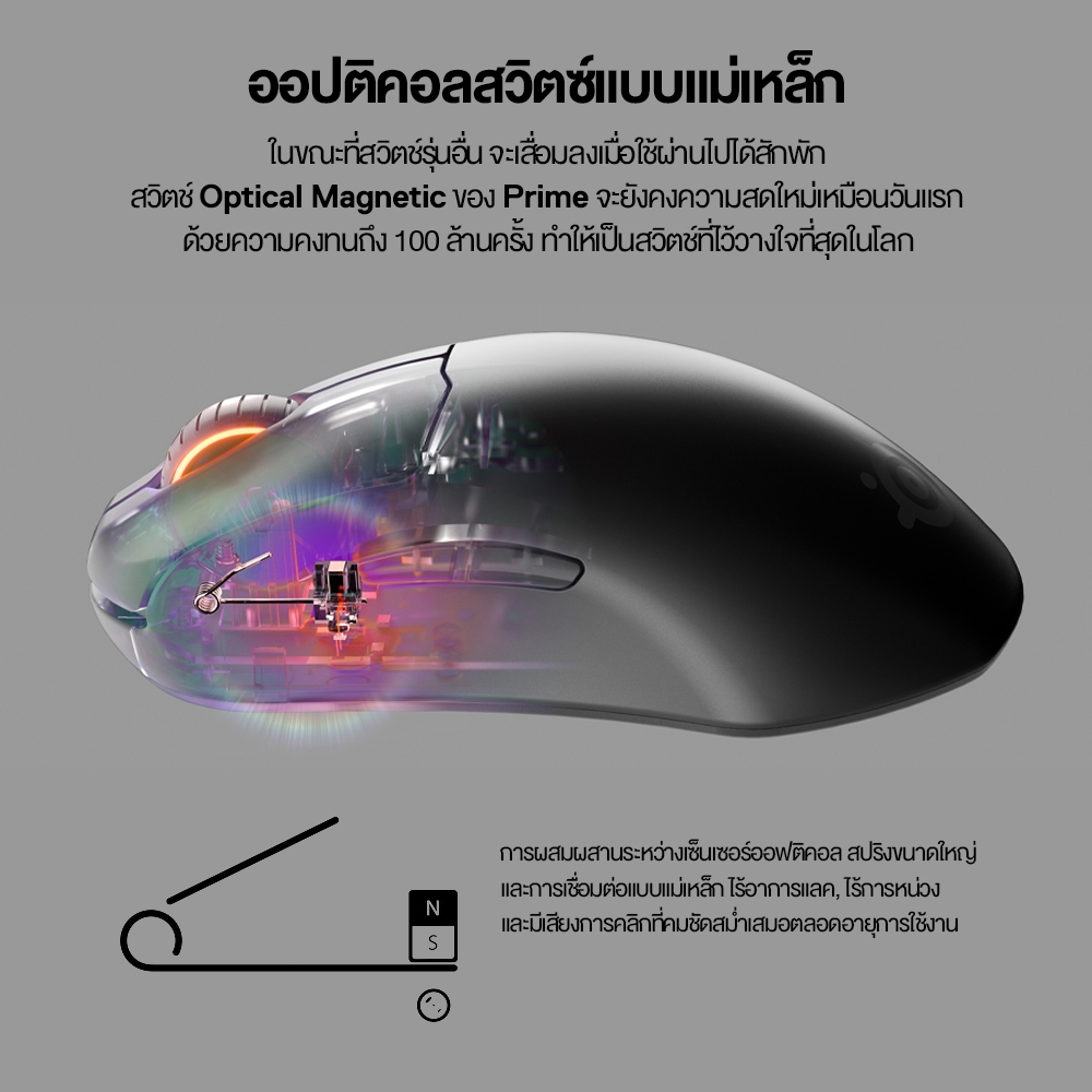 SteelSeries PRIME+ Gaming Mouse เม้าส์เกมมิ่ง eSport OLED Screen 6 ปุ่ม 18,000 CPI