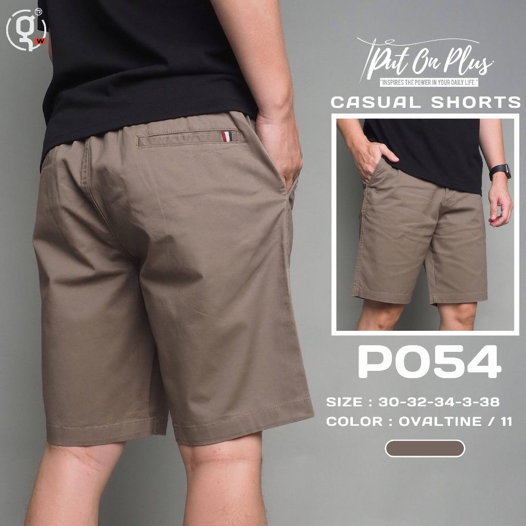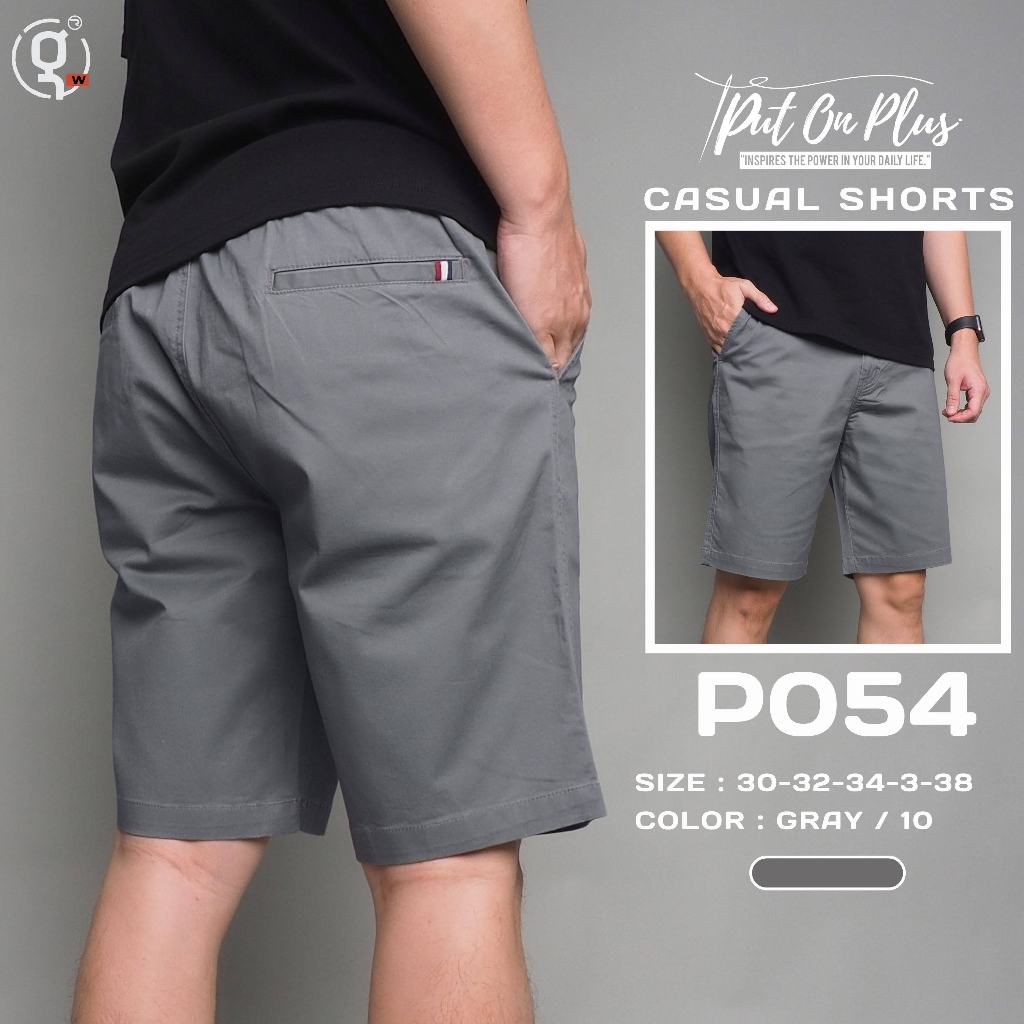 ⚡GW⚡P054 กางเกงขาสั้น ผู้ชาย เอวสม็อค ผ้ายืด คอตต้อน สีพื้น ยาว 17.5-20.5 นิ้ว ไซส์ 30-38 Goodwin Brand