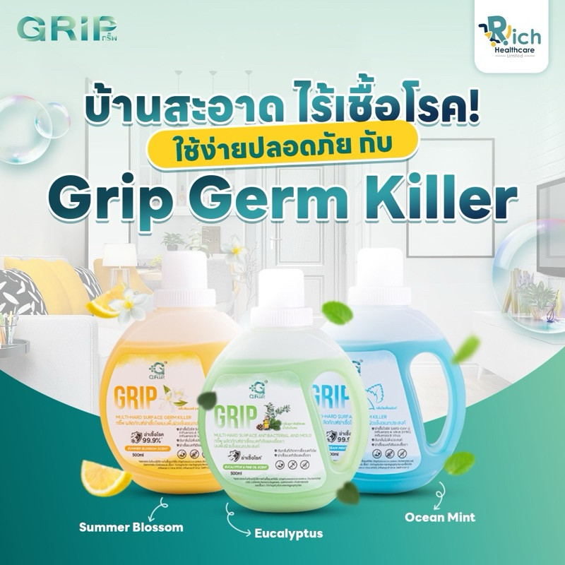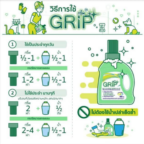 Grip Germ Killer น้ำยาฆ่าเชื้อ ทำความสะอาด ถูพื้น ปลอดภัย ไม่ก่อให้เกิดการแพ้ต่อเด็กเล็ก สัตว์เลี้ยง Multi-Surface 500ml