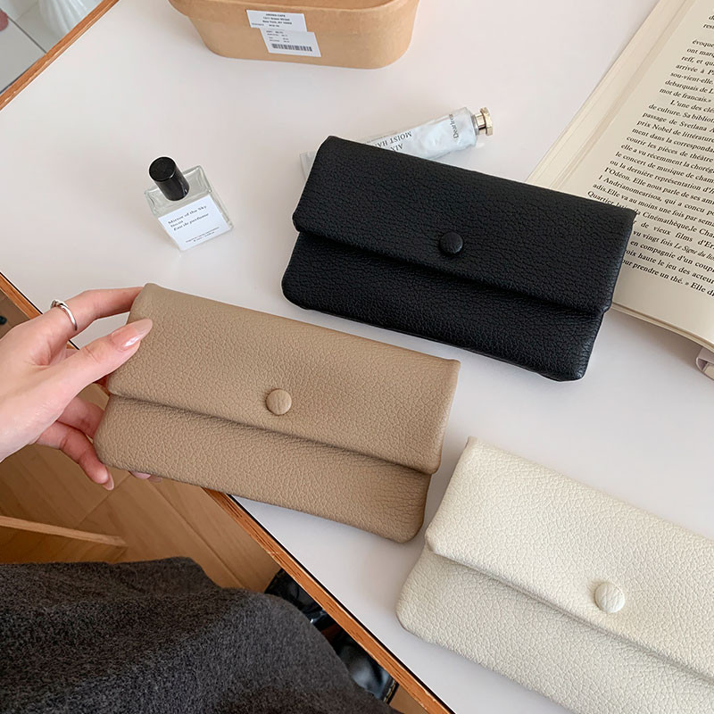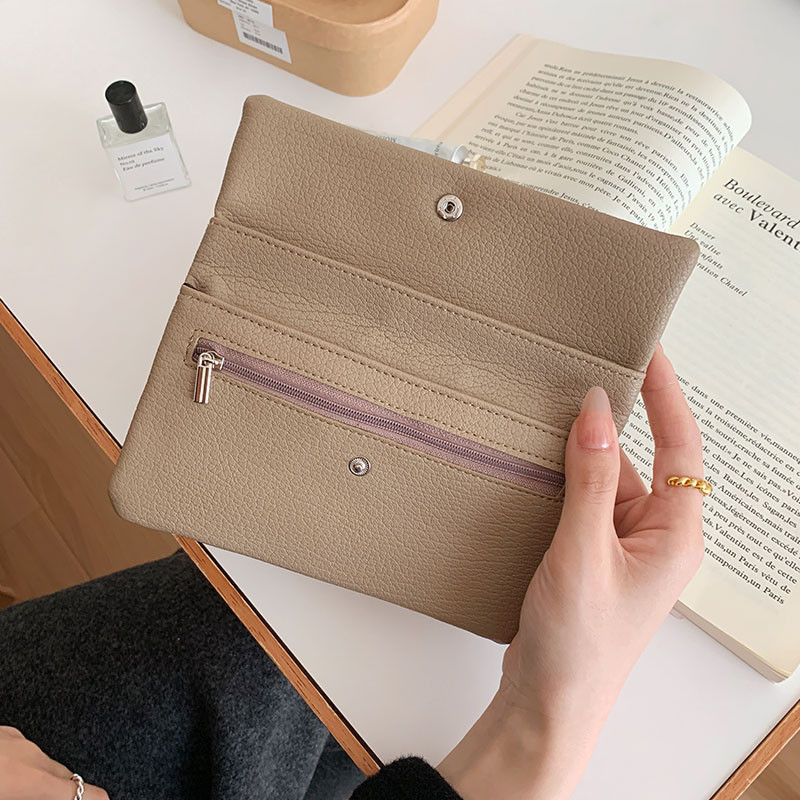 สีทึบที่เรียบง่ายแฟชั่นผู้หญิงกระเป๋าสตางค์ยาวหลายบัตรกรณีความจุขนาดใหญ่หัวเข็มขัดเหรียญกระเป๋าสตางค์