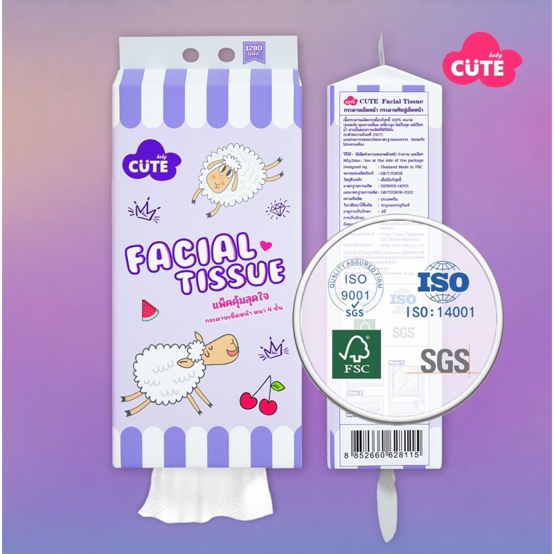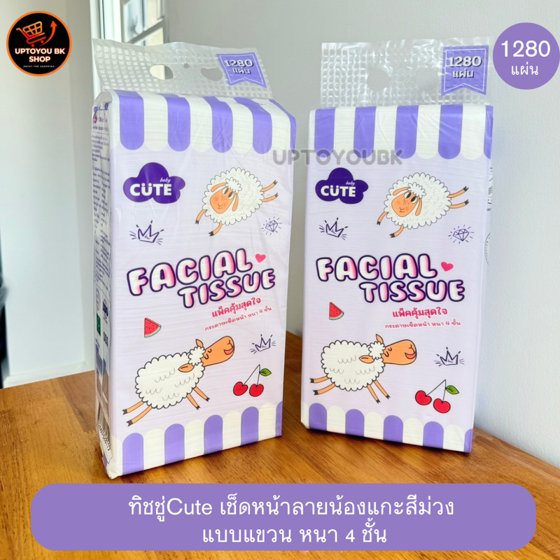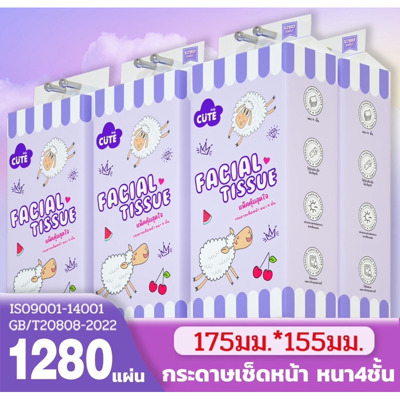ทิชชู่แบบแขวน Cute ลายน้องแกะ เช็ดหน้า และร่างกายได้ 1280 แผ่น หนา4ชั้น แบบดึง กระดาษทิชชู่