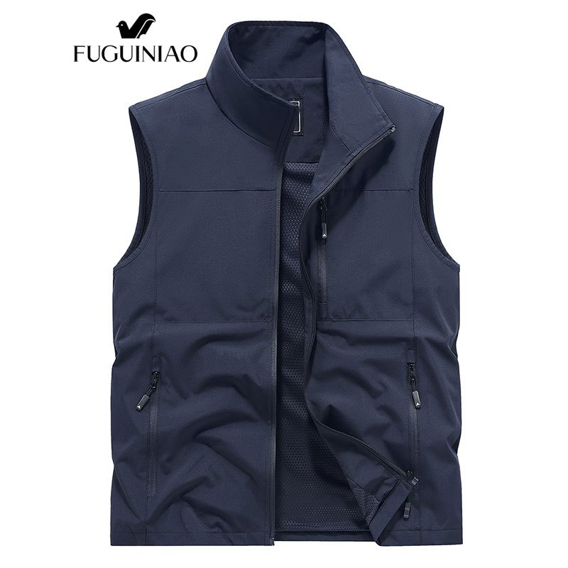 ฟูเกียว เสื้อกั๊กวัยกลางคนแบบบางสําหรับฤดูใบไม้ผลิและฤดูใบไม้ร่วงแบบลําลองสําหรับผู้ชายสีทึบฤดูใบไม้ร่วง