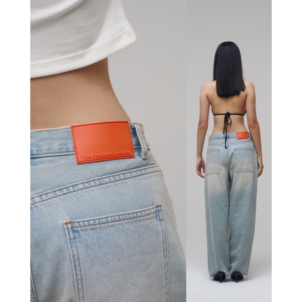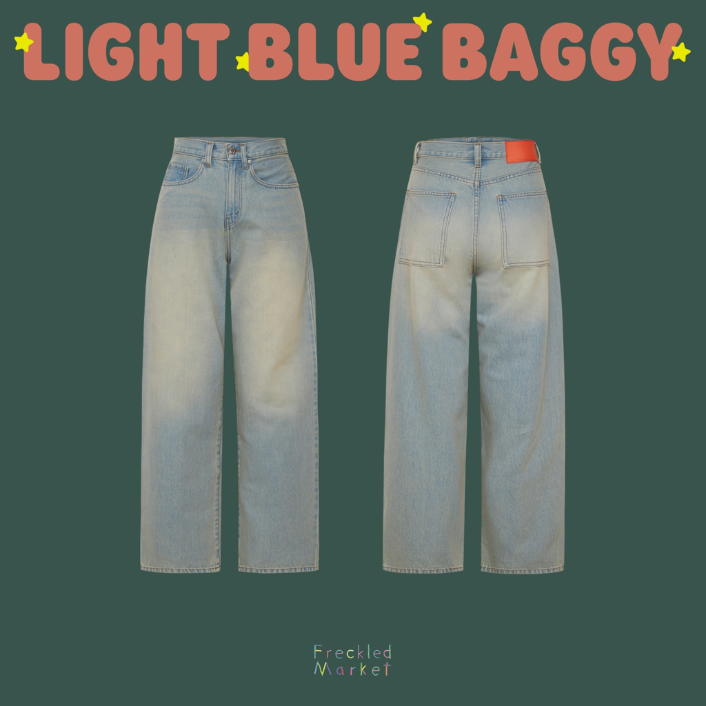 The Freckled Market - Baggy Jeans กางเกงยีนส์ขากระบอก สีฟอก เอวกลาง