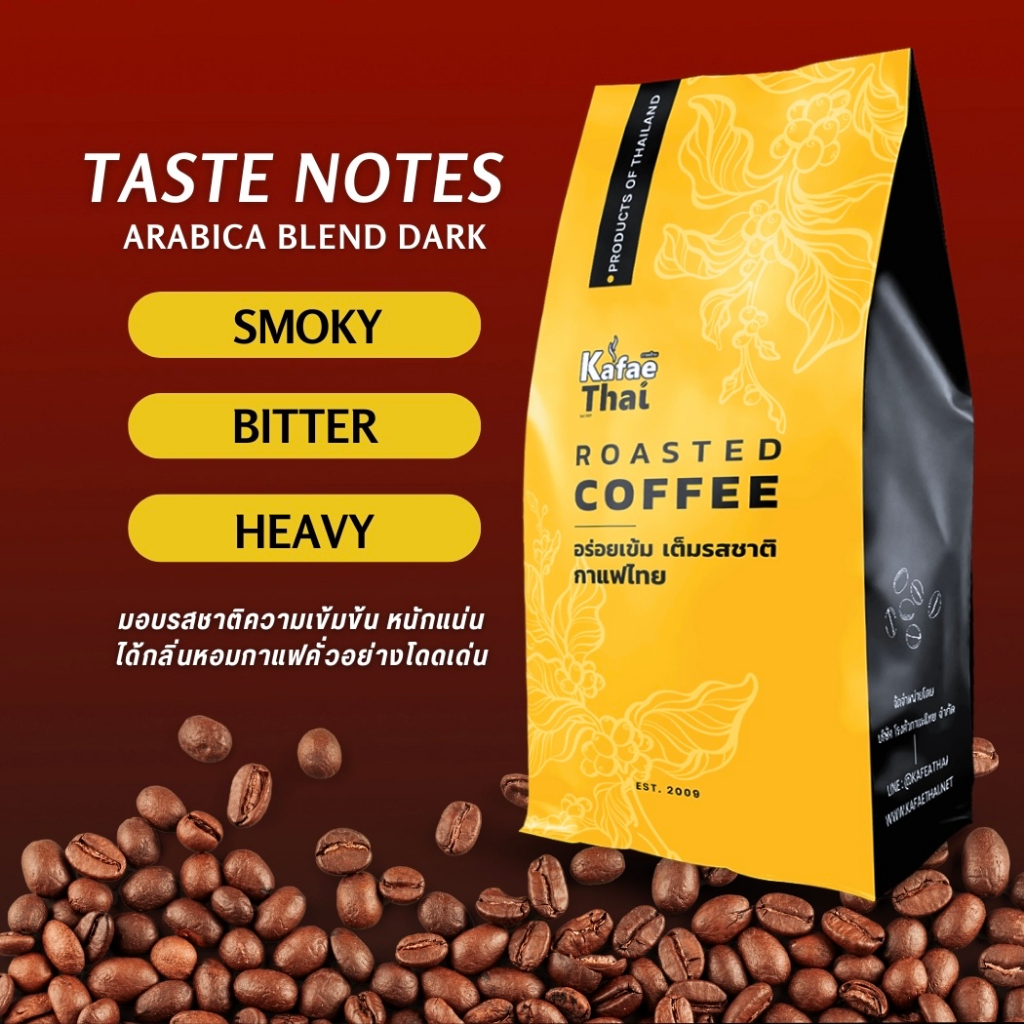 [ส่งฟรี] เมล็ดกาเเฟคั่ว Arabica Blend Dark Roast by KafaeThai คั่วเข้ม อาราบิก้า 100% ขนาด 1กิโลกรัม