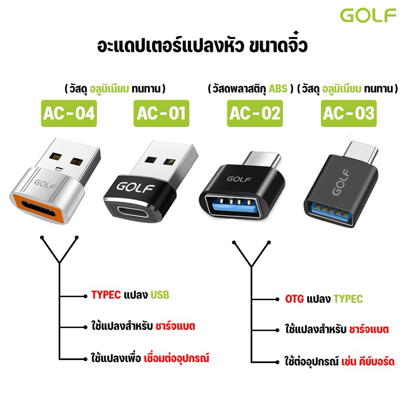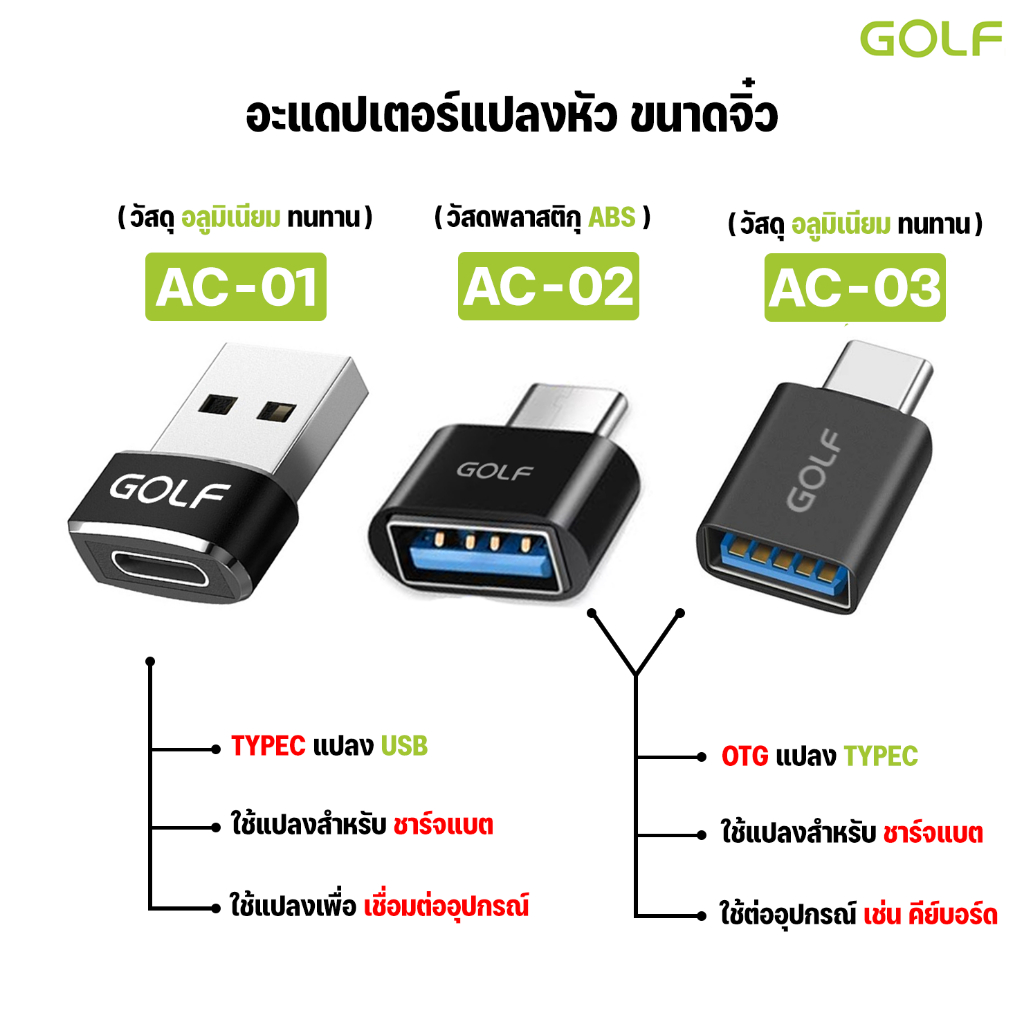 GOLF รุ่น AC01 AC02 AC03 AC04 อะแดปเตอร์แปลง USB-C Male Type C to USB OTG USB to Type-C Adapter 2.0A