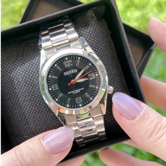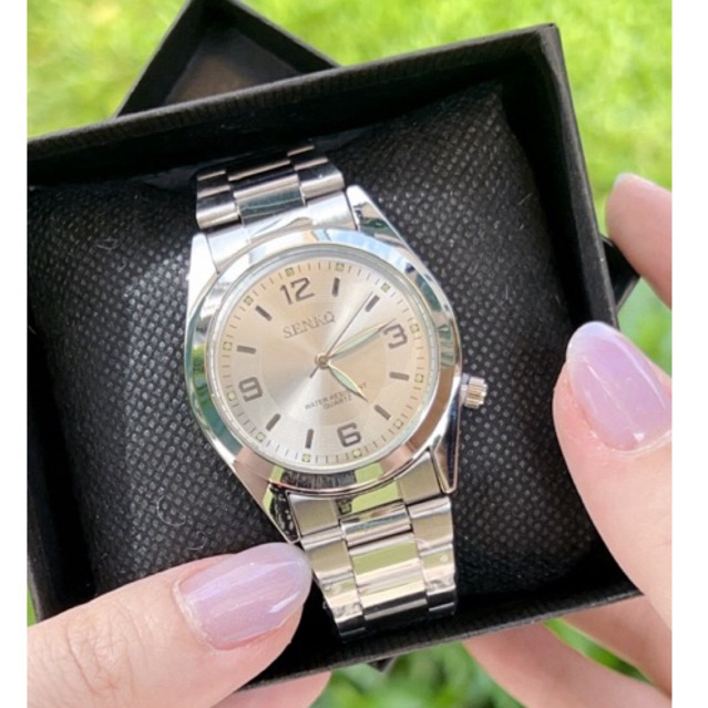นาฬิกาข้อมือผู้ชายและผู้หญิง Senkq หน้าปัดตัวเลขสลับขีด สายสแตนเลส