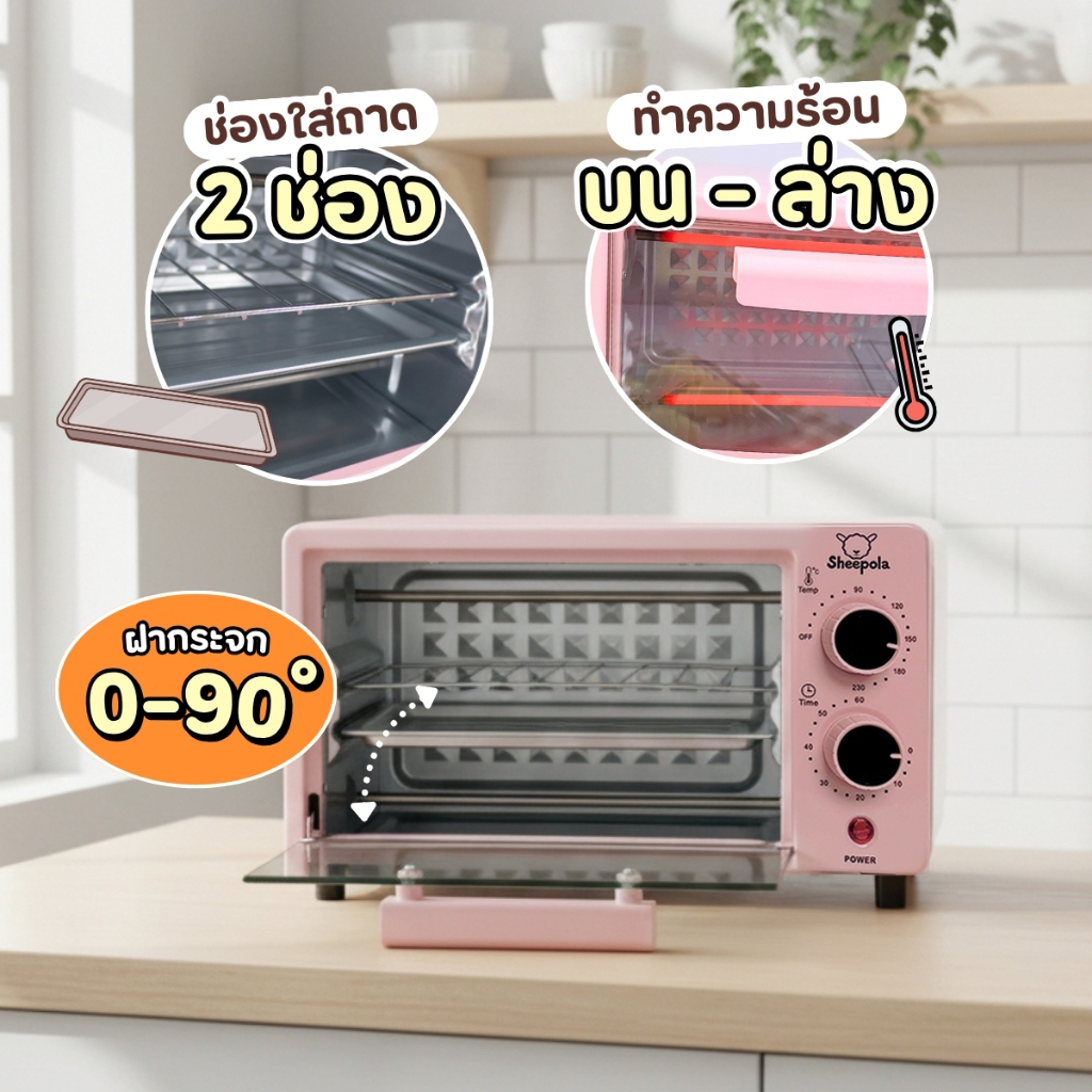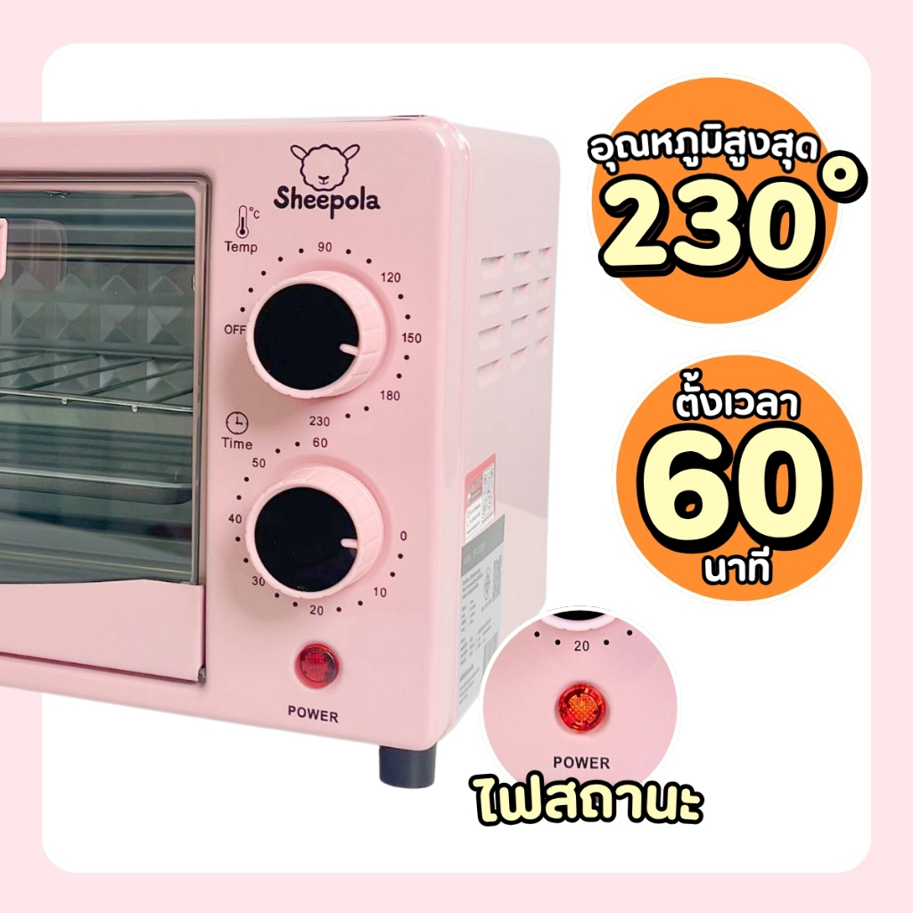 เตาอบ12ลิตร Sheepola สีชมพู หวานๆ เตาอบขนาดเล็ก อบขนม อบเค้ก เตาอบมัลติฟังก์ชั่น ทำได้หลากหลายเมนู เครื่องอบขนม