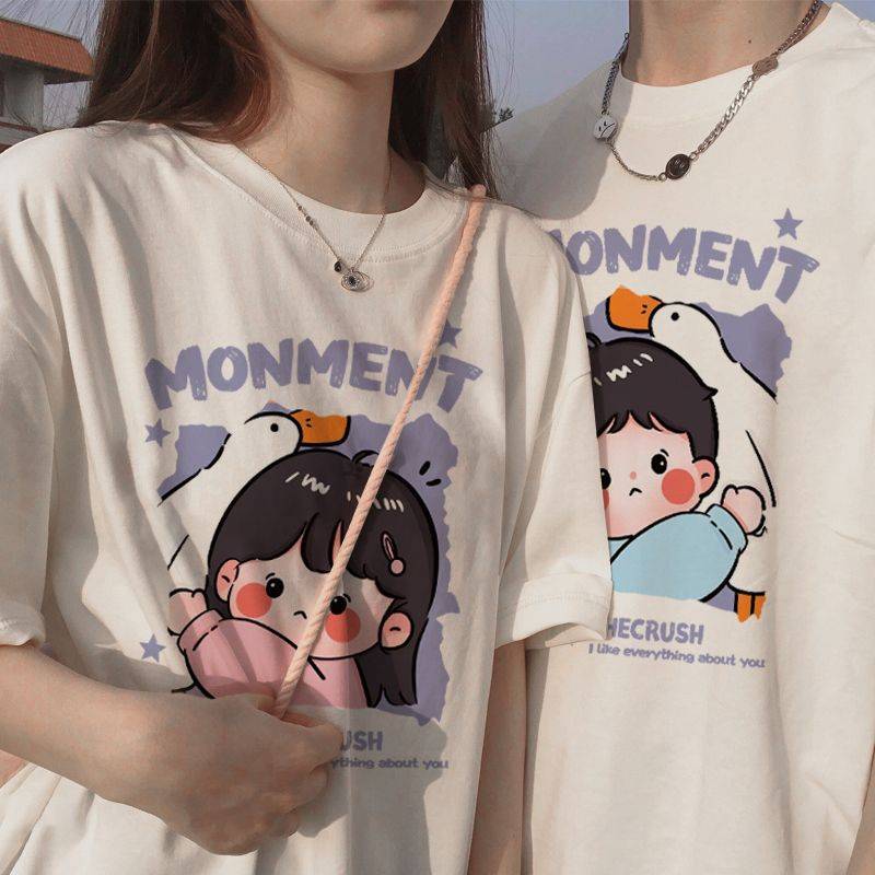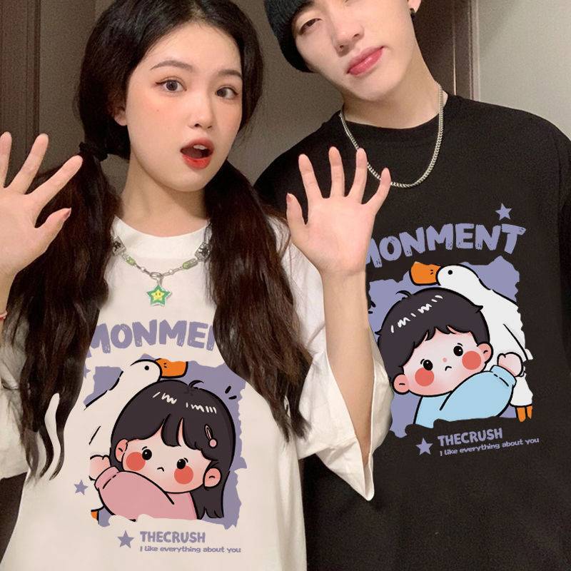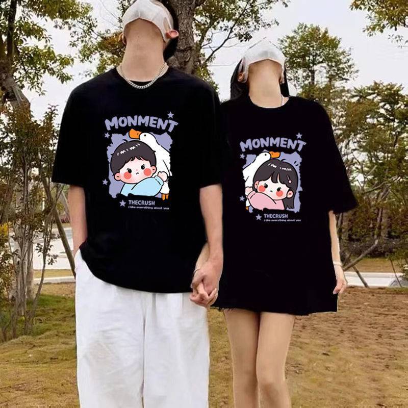 เสื้อยืดแขนสั้นคอกลม เสื้อคู่รัก สกรีนลายน่ารัก ชายหญิง ES138