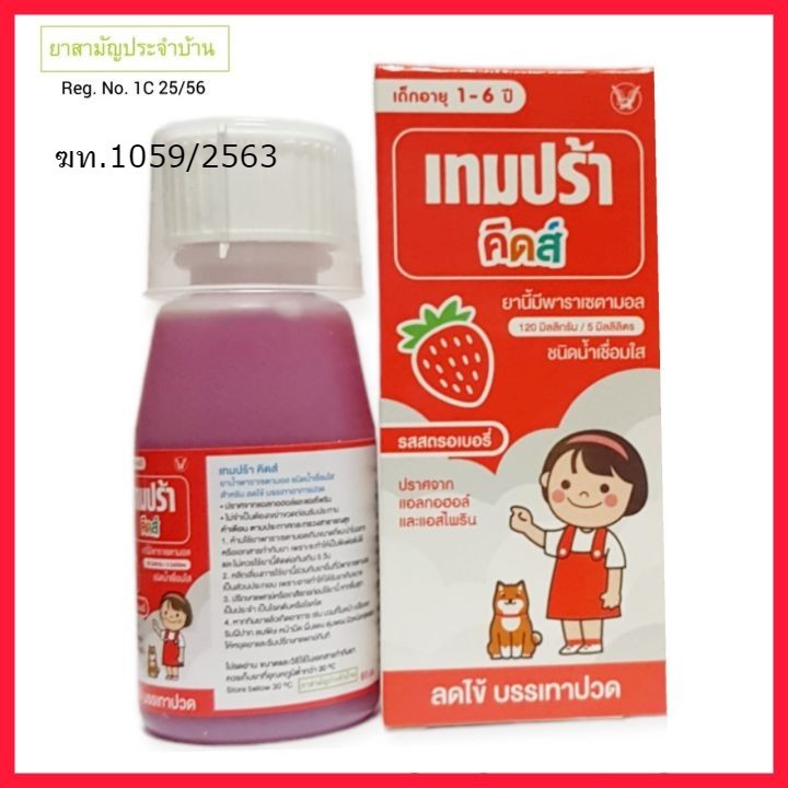 Tempra Kids 60 ml. เทมปร้า คิดส์ พาราน้ำลดไข้ 60 มล. (ยาสามัญประจำบ้าน) (1 ขวด) 120mg