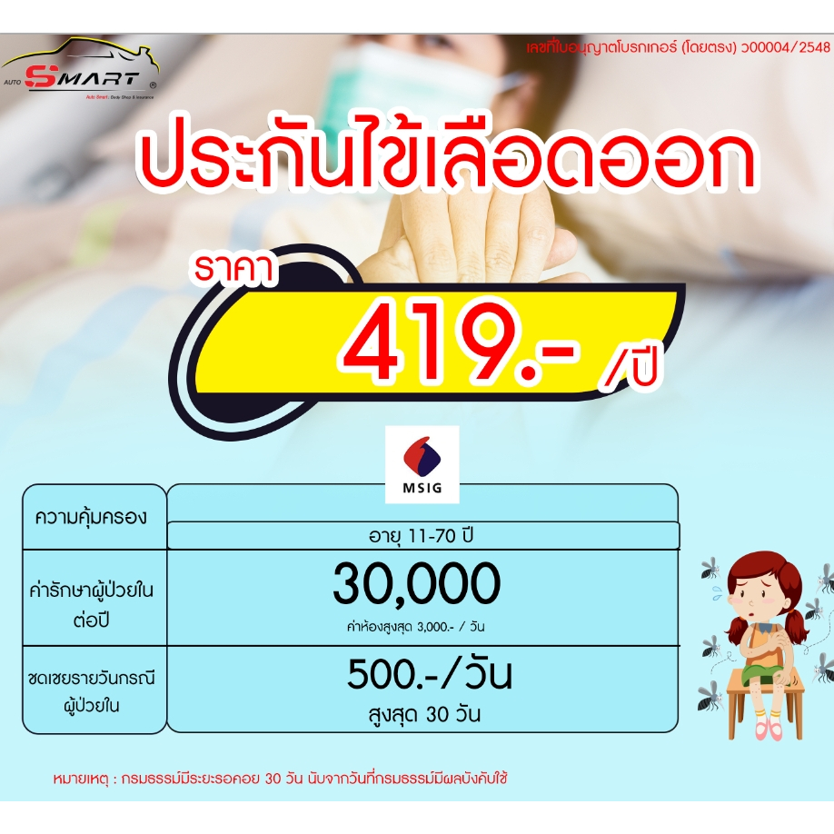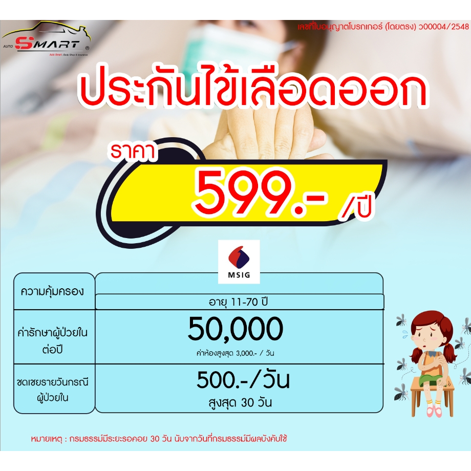 ประกันยุงลาย เริ่มต้น 239.-ต่อปี ประกันภัย ยุงลาย ราคาดี ไม่มีบวกเพิ่ม