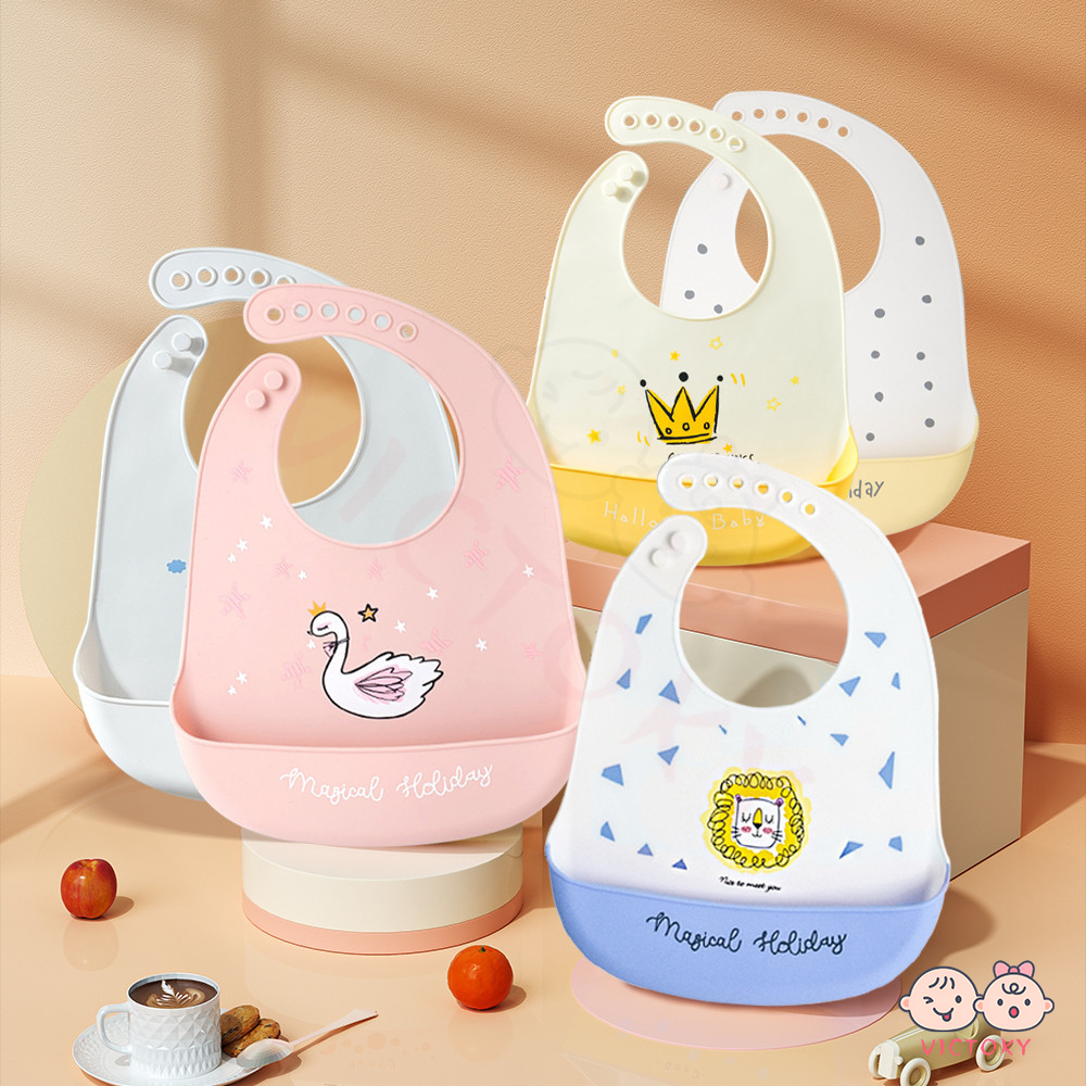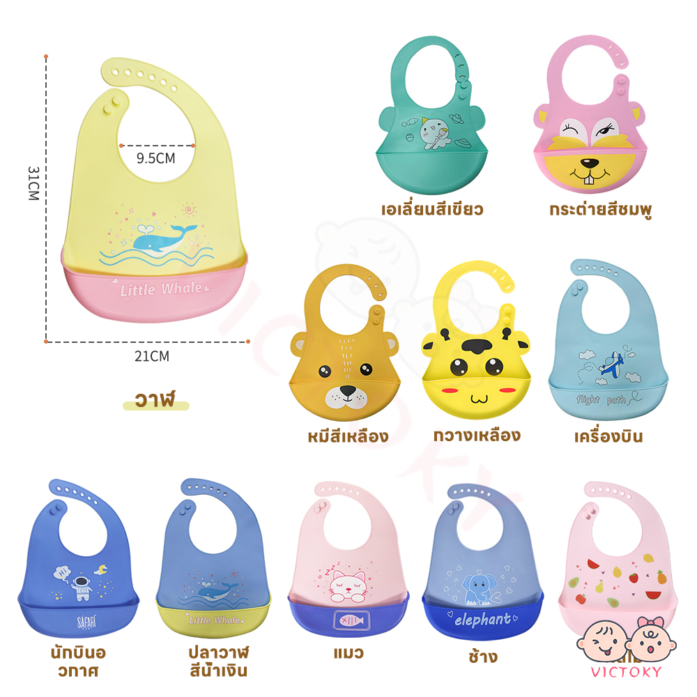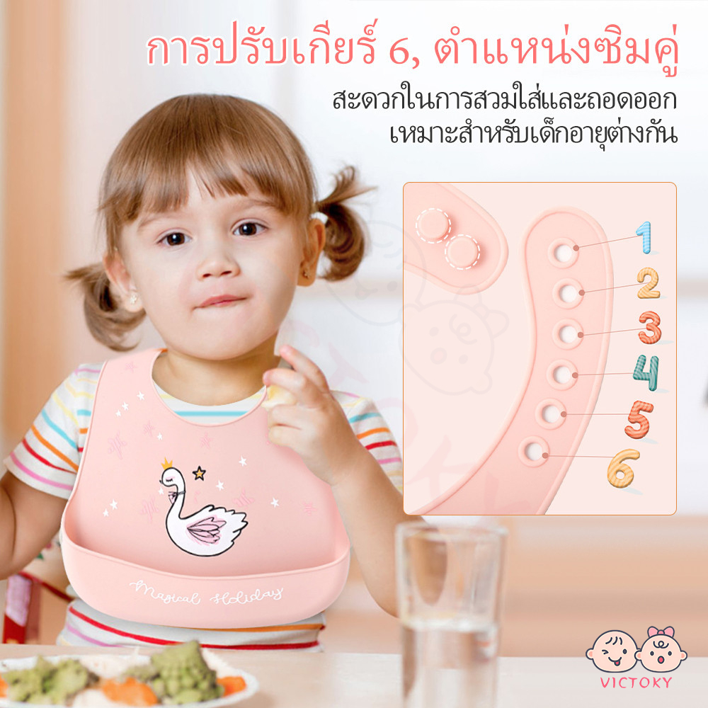 VICTOKY ผ้ากันเปื้อนเด็ก ผ้ากันเปื้อนซิลิโคน กันเปื้อน กันน้ำสำหรับเด็กฝึกกินข้าว กันน้ํา ปลอดภัยสำหรับเด็ก