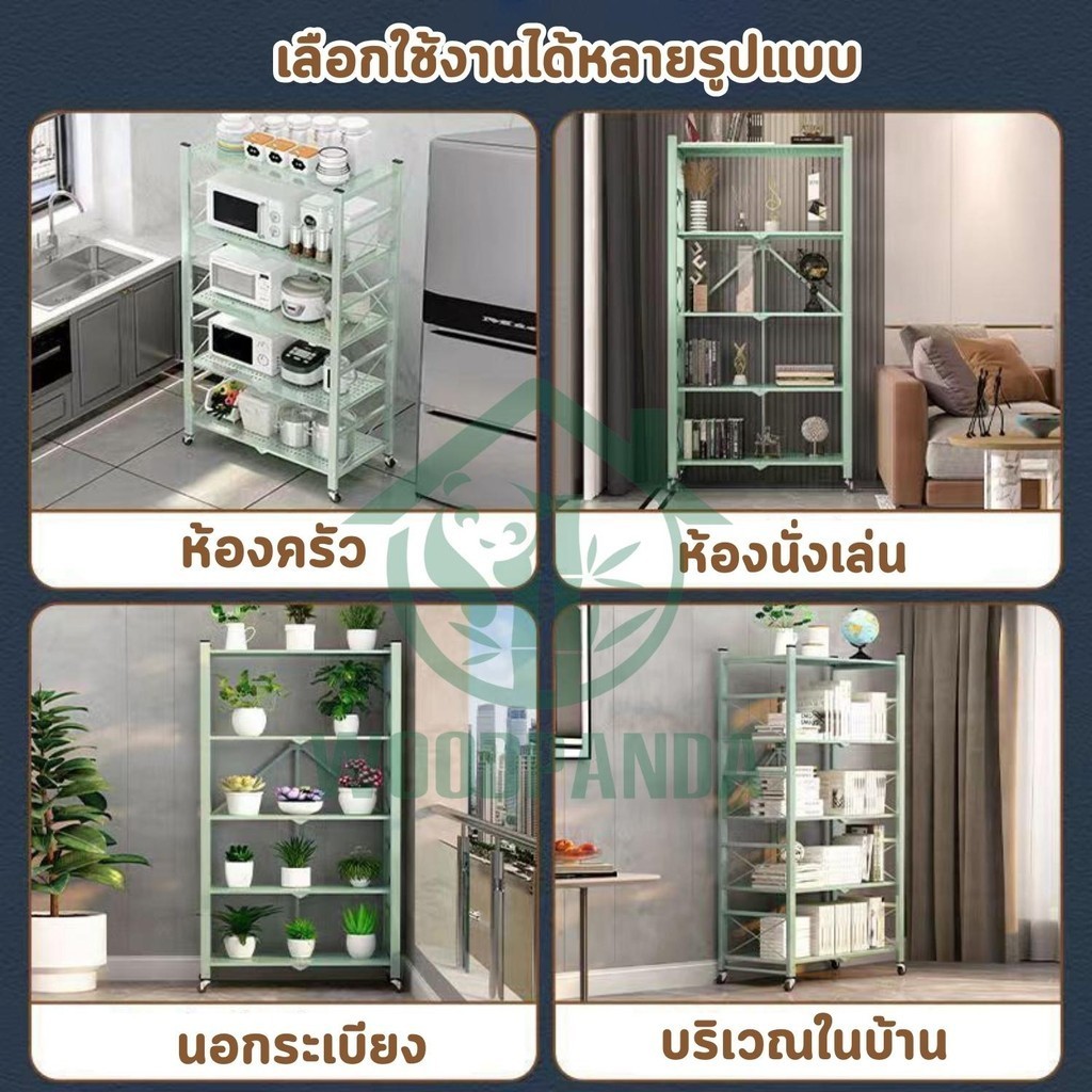 Woodpanda ชั้นวางพับได้ 5 ชั้นมีล้อเลื่อนเคลื่อนที่ได้ง่าย ใช้สำหรับห้องครัว ห้องนั่งเล่น ระเบียงบ้าน
