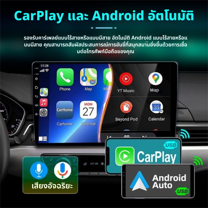 พัดลมคู่ จอ android รถยนต์ Wireless Carplay/Android auto จอ 7 9 10นิ้ว 8G+64G 4 core Android 14 FM GPS Wifi บลูทูธ EQDSP