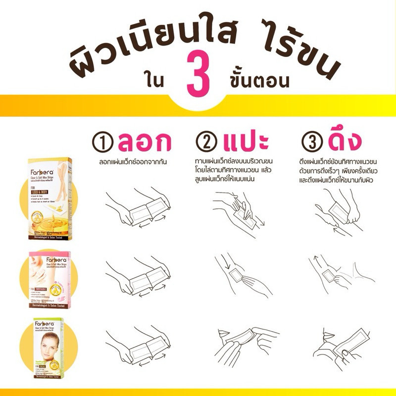 (12แผ่น/กล่อง) Farbera Clear & Soft Wax Strips (For Legs & Body) 12 Wax Strips ฟาร์บีร่า แผ่นแว๊กซ์ จำกัดขน