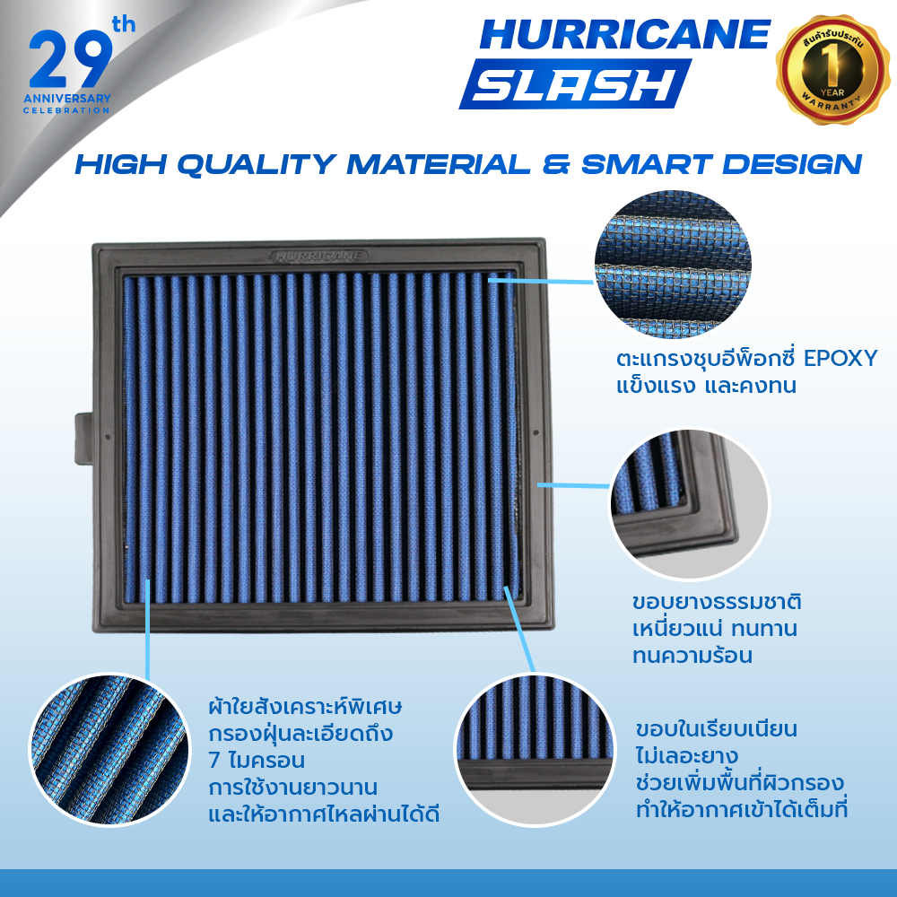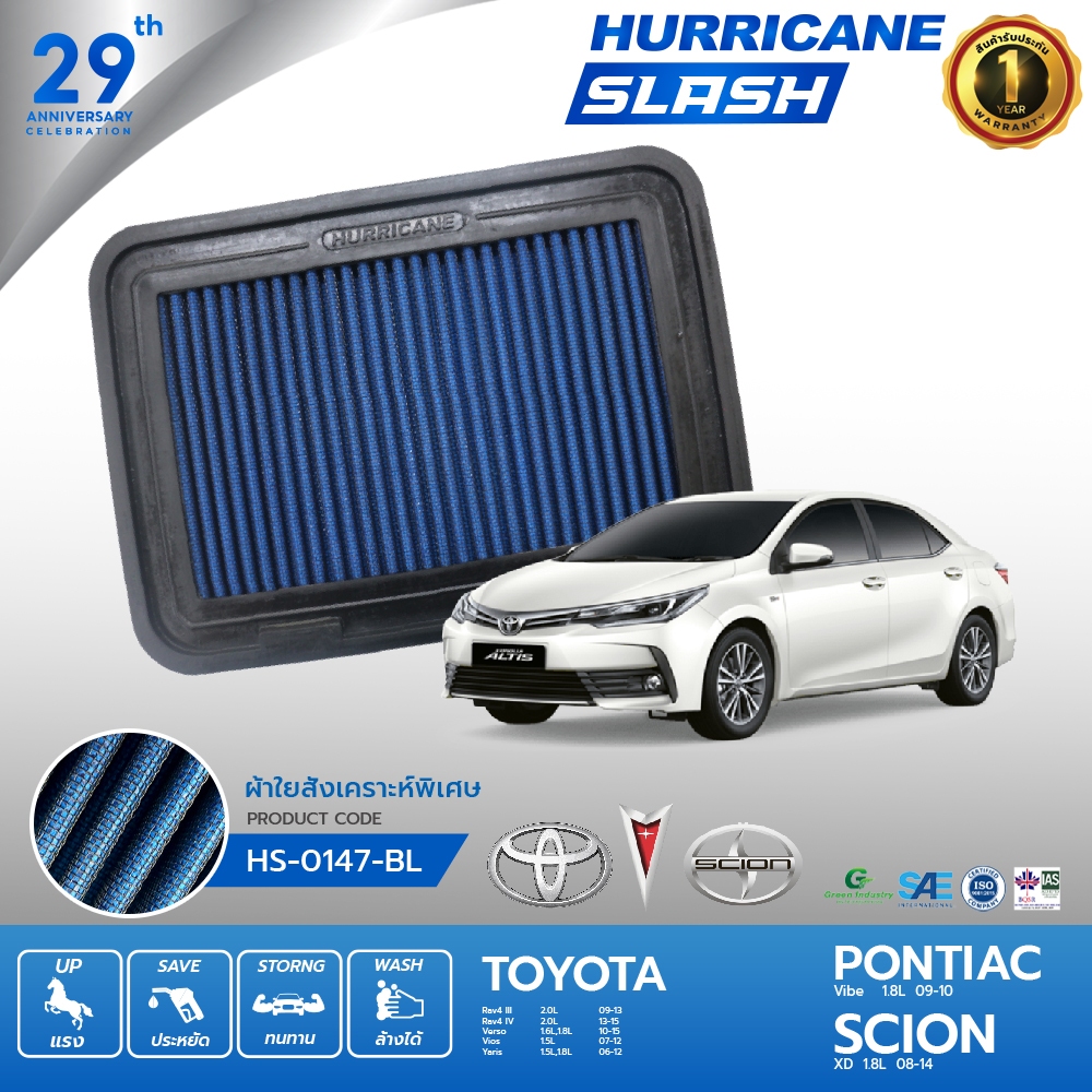 HURRICANE SLASH กรองอากาศผ้าน้ำเงินรุ่นใหม่ล่าสุด Pontiac Vibe, Scion XD, Toyota (Vios, Yaris, Altis) HS-0147-BL