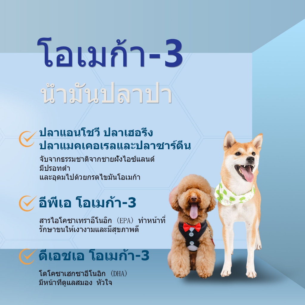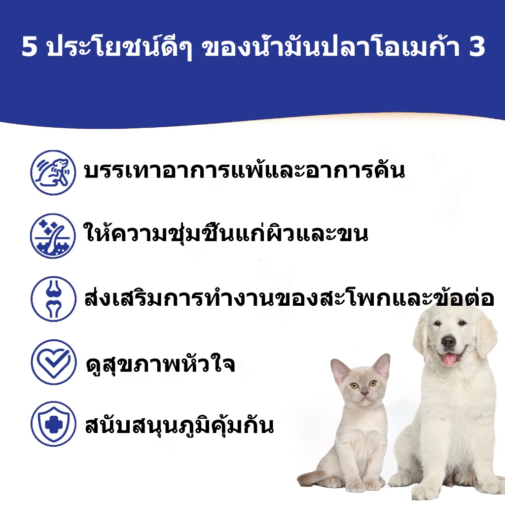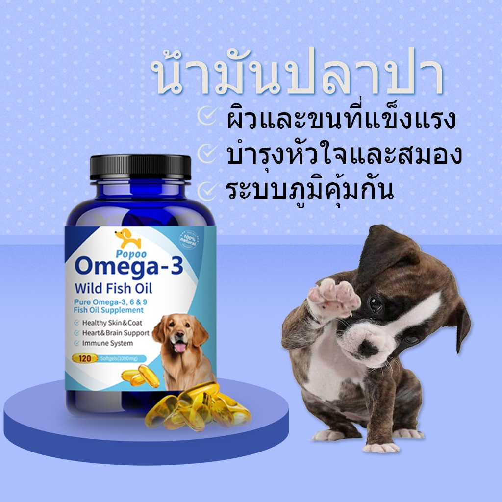 Popoo Omega 3 Wild Fish Oil for Dogs and Cats Supplement พรีเมี่ยมน้ำมันปลาสำหรับสัตว์เลี้ยง บำรุงขน ผิวหนังและข้อต่อ