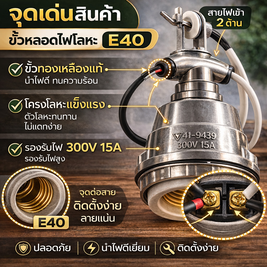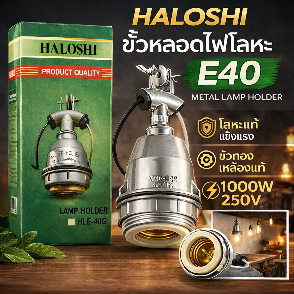 Haloshi ขั้วห้อยโคมไฟ อลูมิเนียม กันน้ำ เกลียว E40 พร้อมสาย 12 CM ขั้วห้อย ตุ๊กตา สีเทา