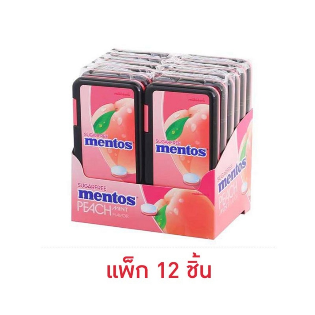 เมนทอส ลูกอมชูการ์ฟรีรสพีชมินต์ 21 กรัม (แพ็ก 12 ชิ้น)