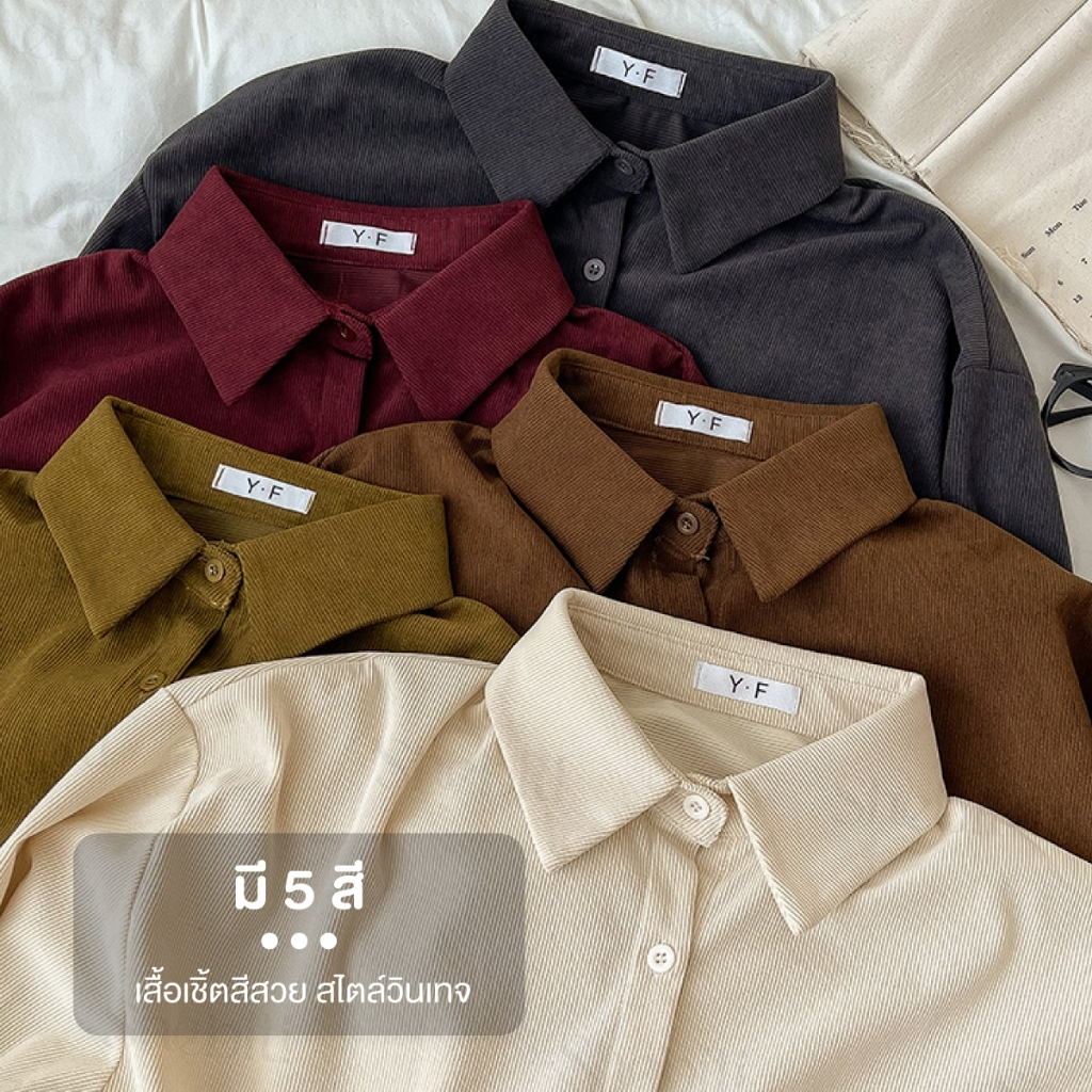 Shebiti Long Sleeve Shirt เสื้อเชิ้ต แขนยาว คอปก ใส่ทำงาน ใส่สบาย สีพื้น เสื้อคลุม สไตล์เกาหลี