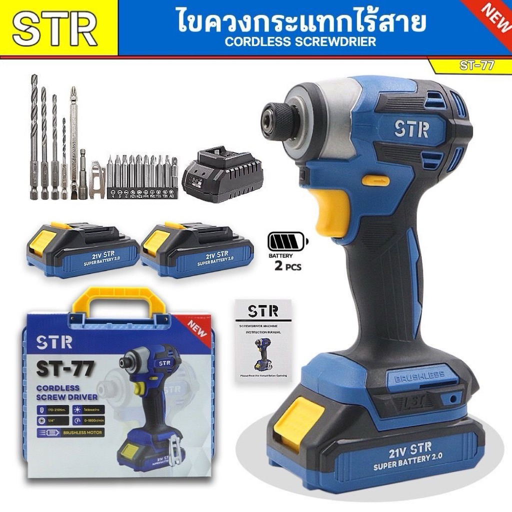 🔥ของแท้💯🔥ไขควงกระแทกไร้สาย STR รุ่น ST-77 พร้อมของแถมจัดเต็ม