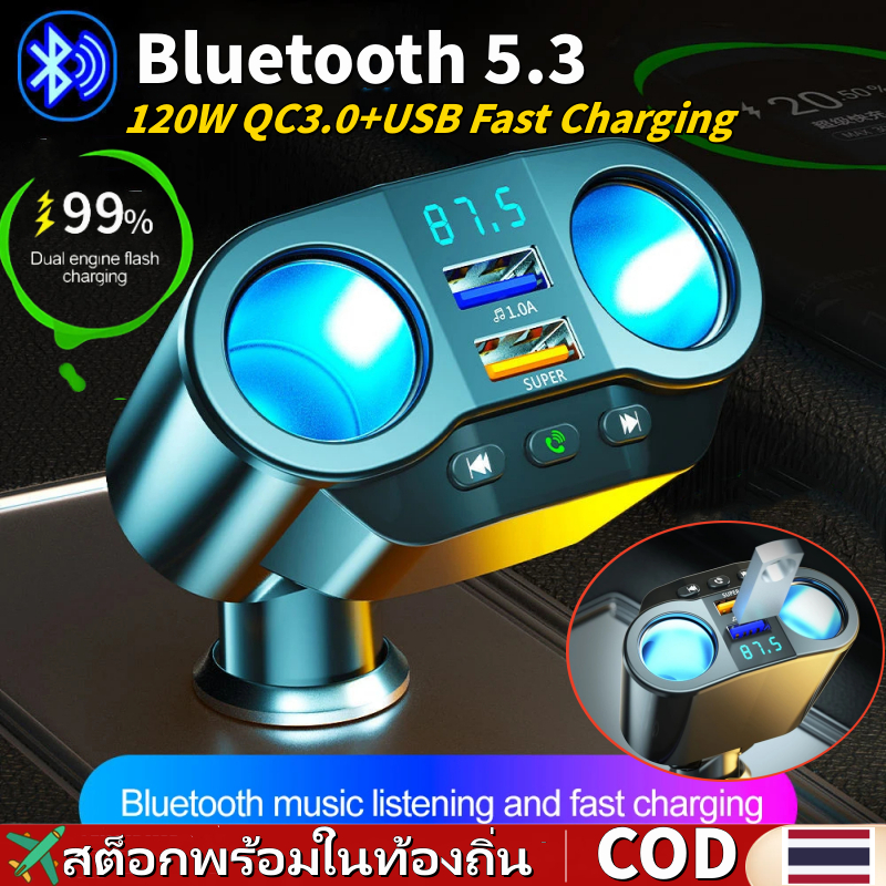 🚀ส่งจากไทย🚀 Qc3.0 อะแดปเตอร์ซ็อกเก็ตที่จุดในรถยนต์ 12-24V Dual USB QC3.0 USB 4.8A ที่ชาร์จในรถ ชาร์จเร็ว รองรับบลูทูธโทร/ดิสก์ U ฟังเพลง 4.8A/90W
