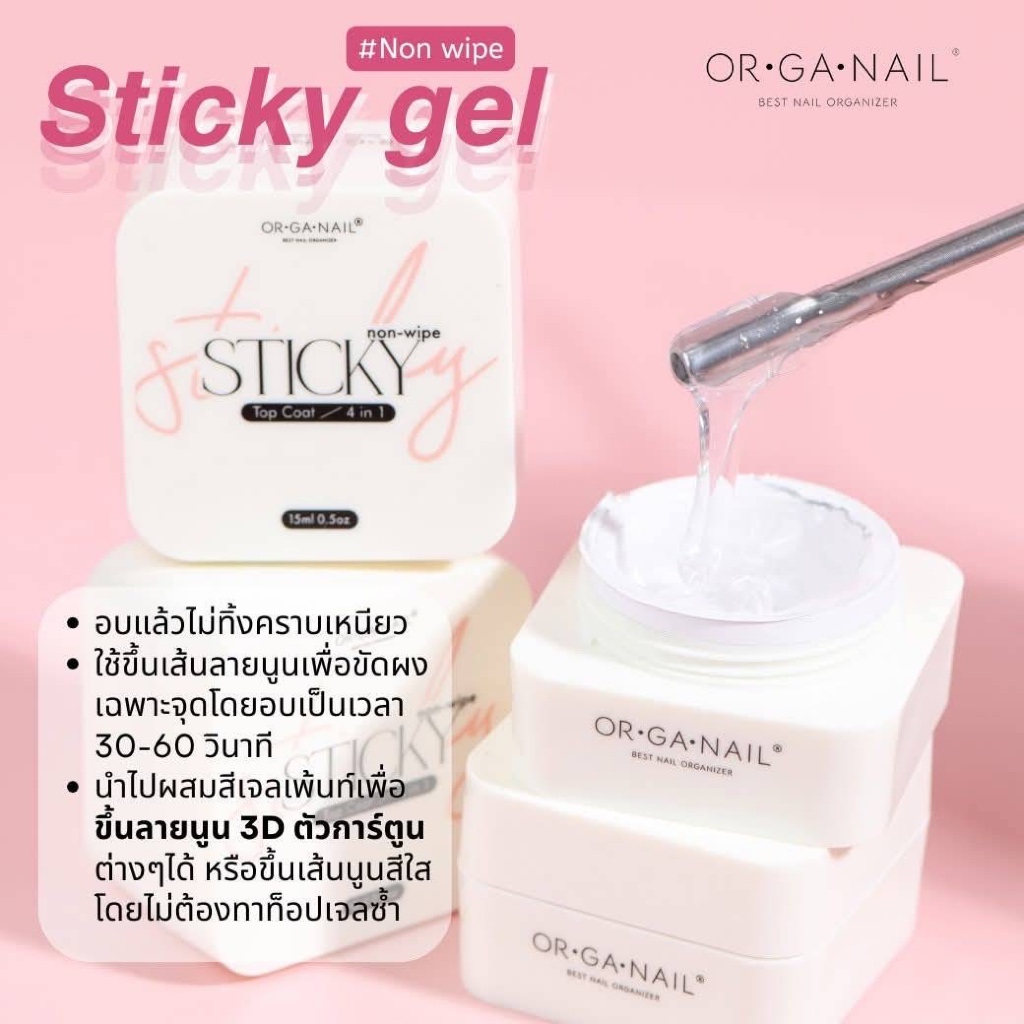 Sticky Top gel ORGANAIL●PITCHA หลายตัวเลือก กระปุก15g./20g./pumping 30g.ท้อปnon wipe อบแล้วขัดผง