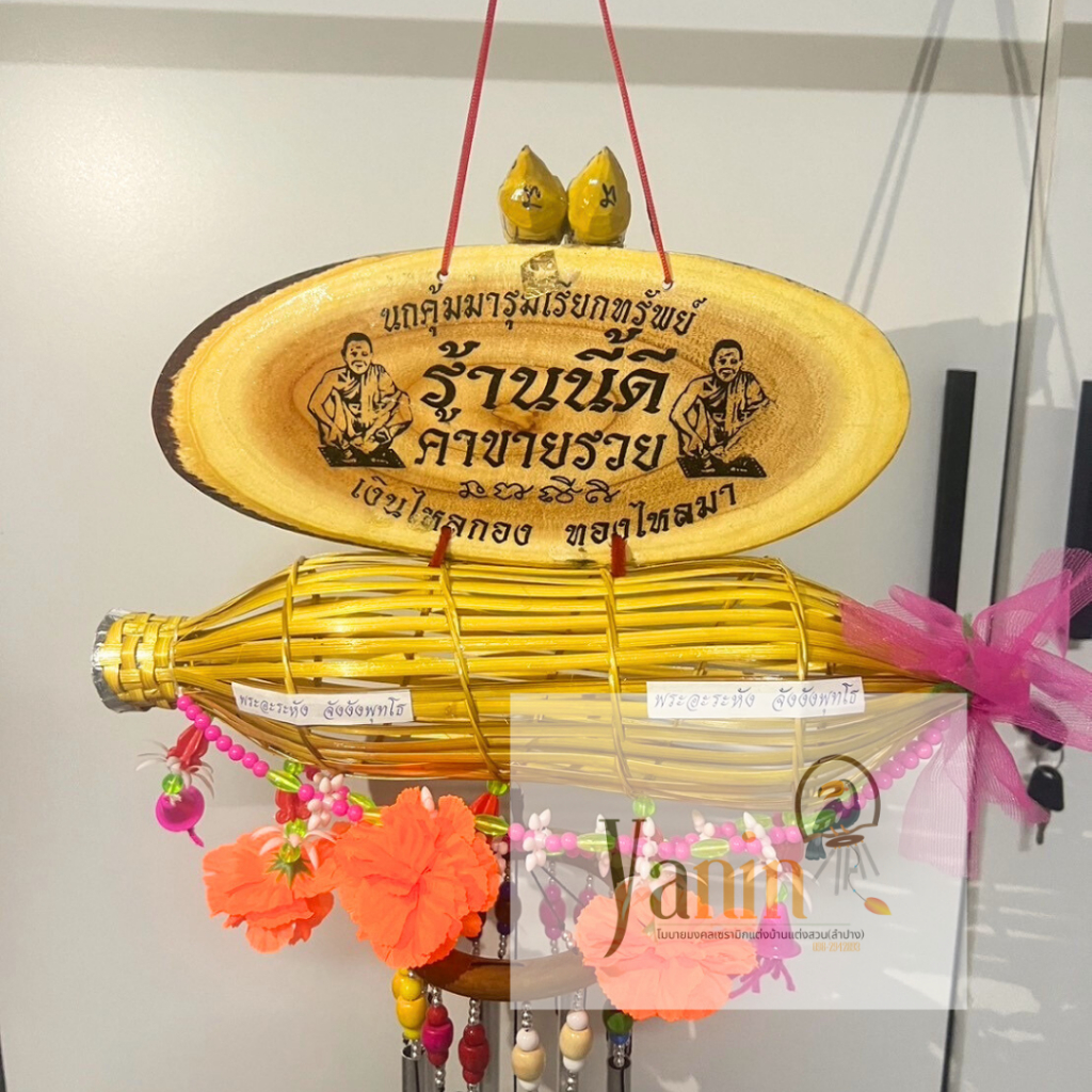 โมบายแขวน ป้ายหลวงพ่อคูณ ร้าน/บ้านนี้อยู่แล้วรวย ร่ำรวยเงินทอง ไซส์ใหญ่