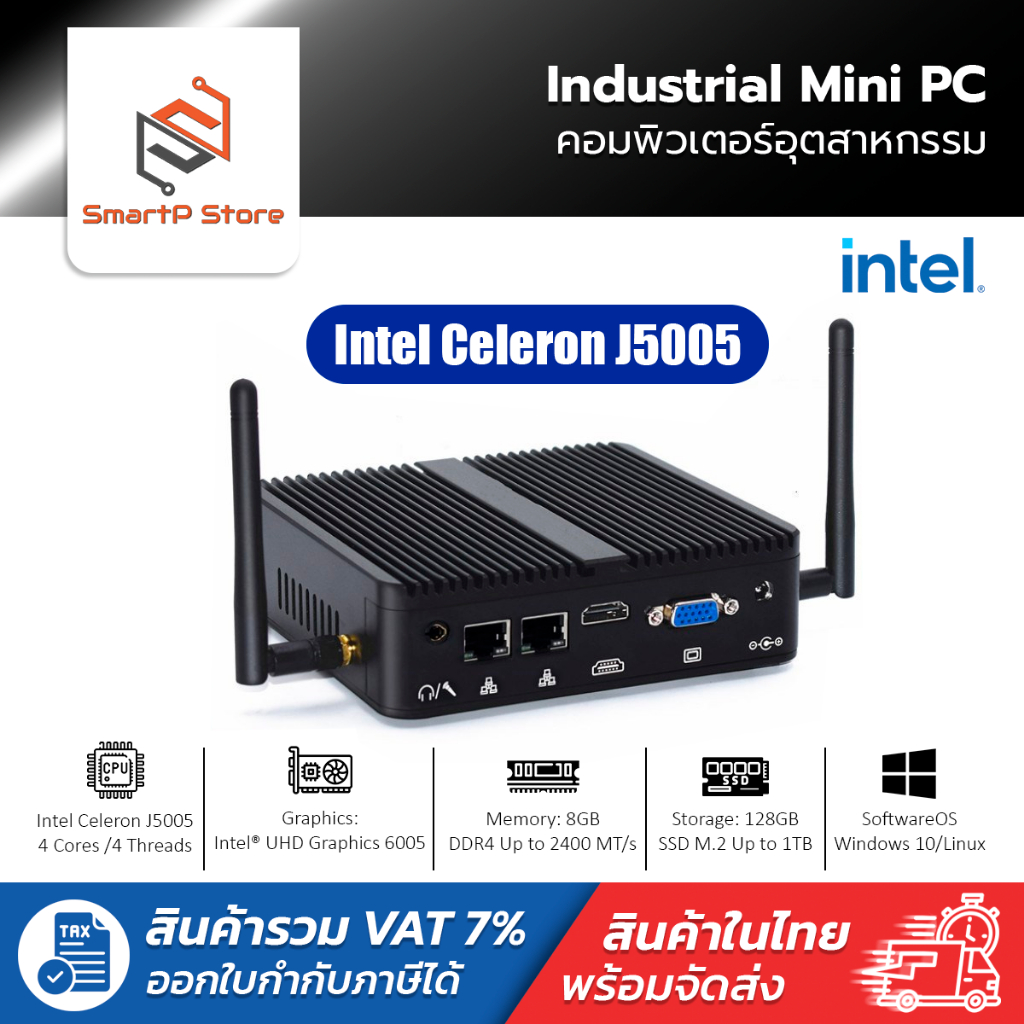 SMART Industrial Mini PC คอมพิวเตอร์อุตสหกรรม Intel Celeron J5005 Windows 10