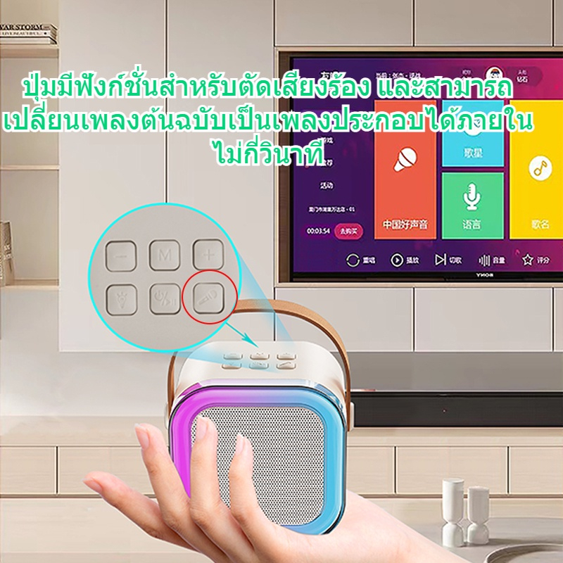 K12 ไมโครโฟนคู่ แบบพกพา ลำโพงบลูทูธ รองรับ USB/TF/AUX ไมโครโฟน RGB มินิ แบบพกพา ลำโพงคาราโอเกะ ไร้สายกลางแจ้งขนาดเล็ก