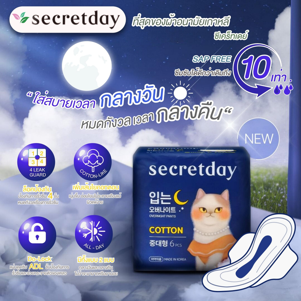 (รวมCotton) สำหรับผิวแพ้สุดๆ Secretday Cotton ผ้าอนามัยซีเคร็ทเดย์ คอตตอน 4 Lock ล็อกการไหล ป้องกันการซึมเปื้อน