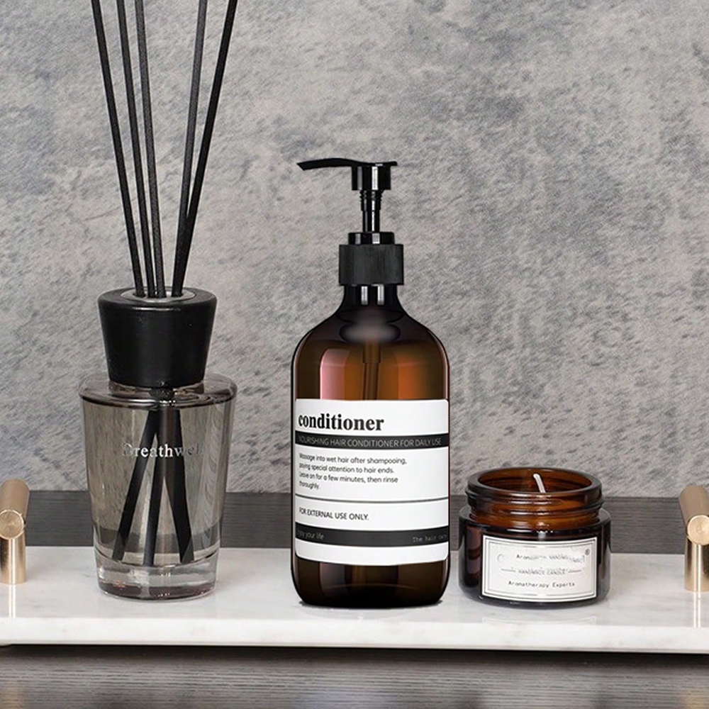 ขวดเปล่า สีเหลืองอําพัน เติมได้ ขนาด 500 มล. สําหรับใส่แชมพู ครีมนวดผม สระผม อาบน้ํา โรงแรม