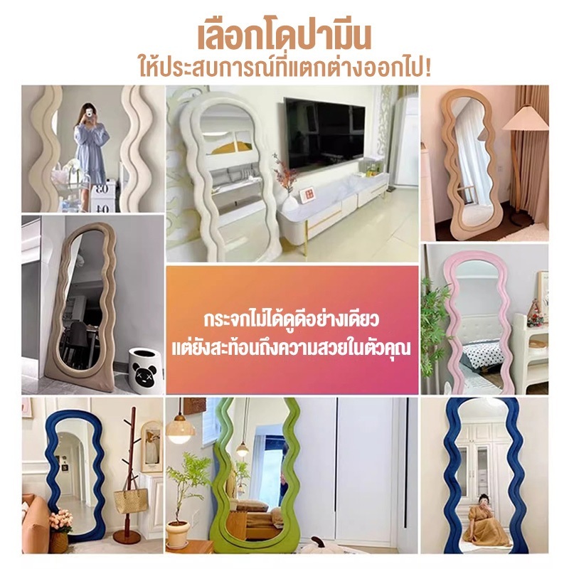 LP กระจกยาว ดระจกเต็มตัว รูปร่างคลื่น ขอบผ้ากำมะหยี่ เหมาะสำหรับร้านขายเสื้อผ้า ห้องนอน และหอพักหญิง