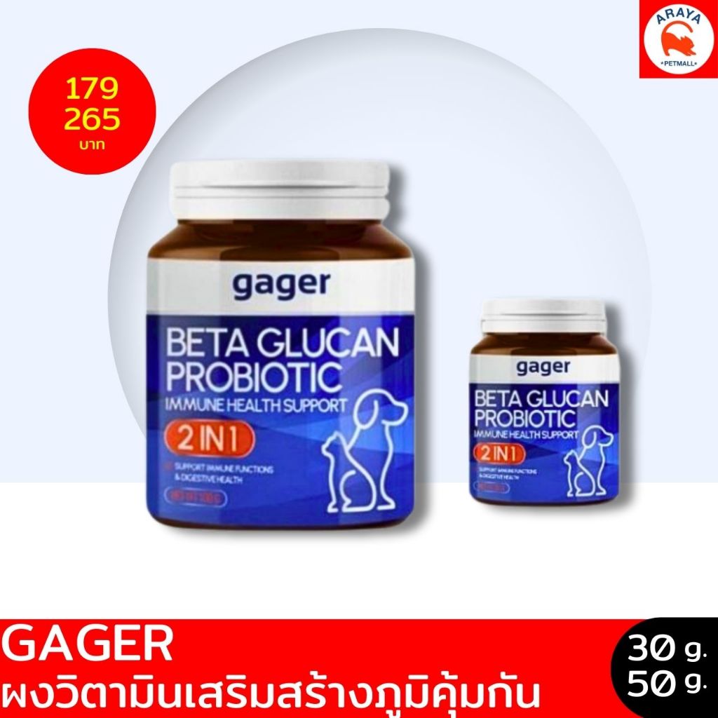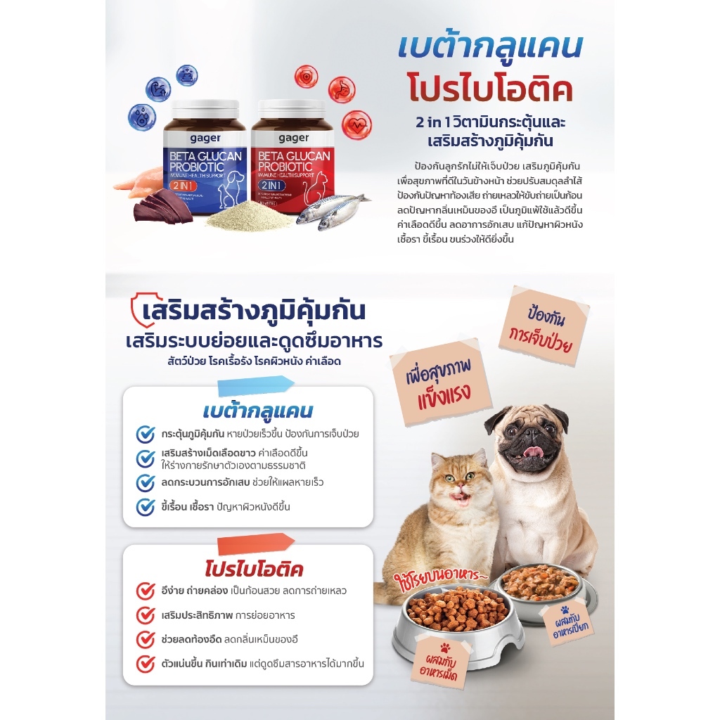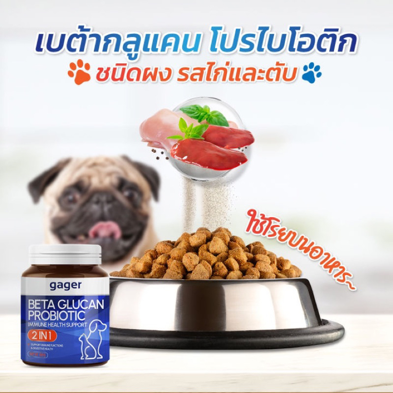 *นํ้าเงิน * GAGER BETA GLUCAN PROBIOTIC ผงวิตามินเสริม สร้างภูมิคุ้มกันในสุนัขและแมว