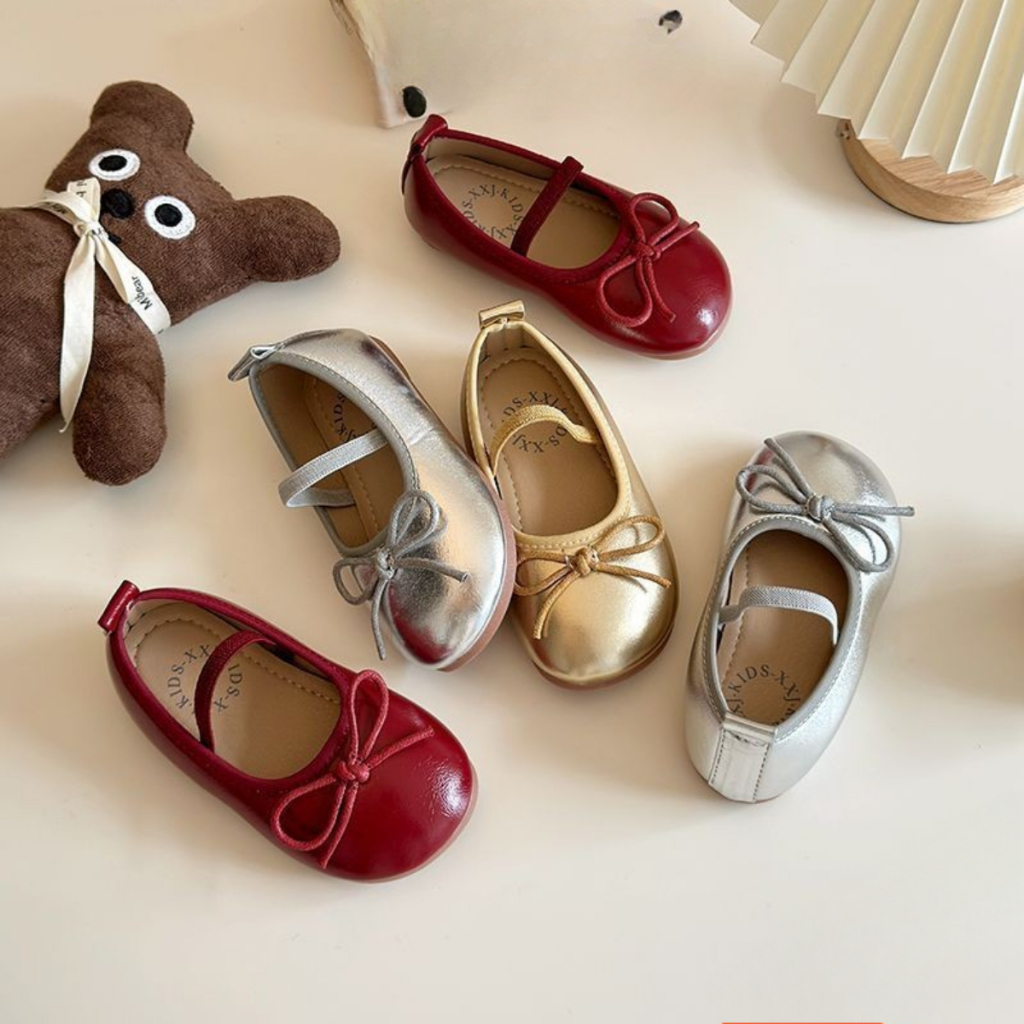 SUGE รองเท้าหนังลําลองสีแดง พื้นนิ่ม ขนาดเล็ก สไตล์เจ้าหญิง รองเท้าแมรี่เจนเด็ก สําหรับเด็กผู้หญิง