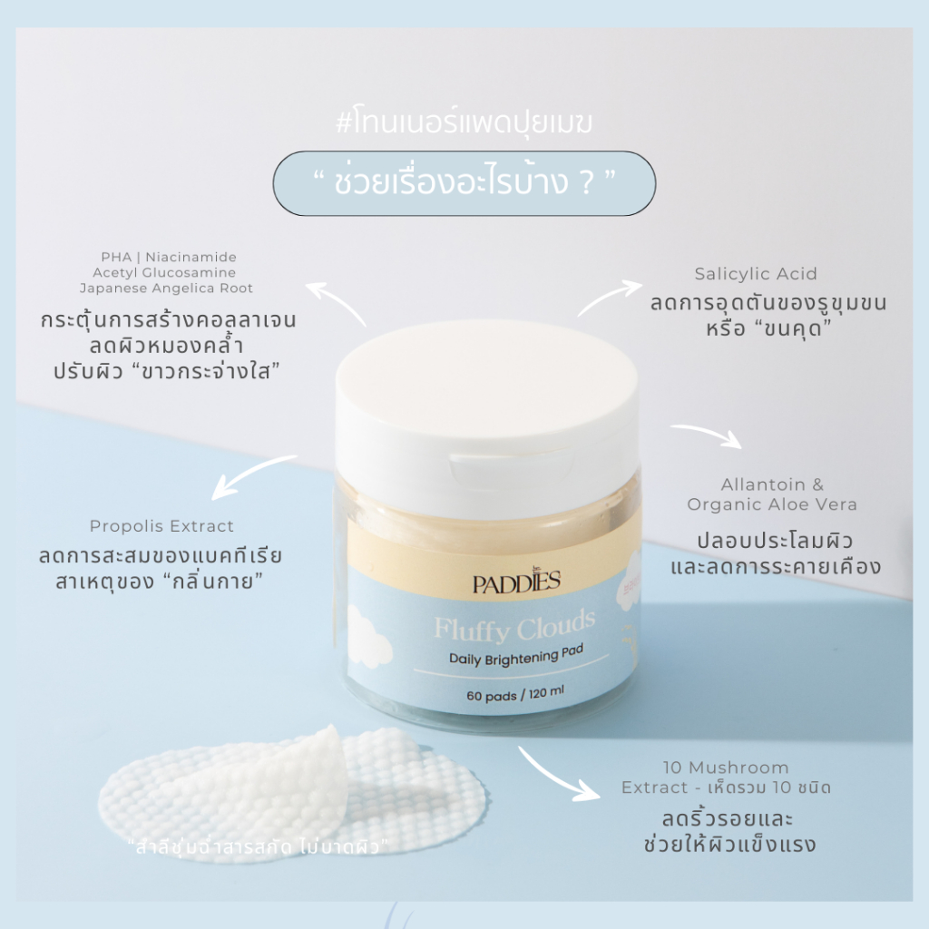 PADDIES - Fluffy Clouds Daily Brightening Pad ( 3 กระปุก )