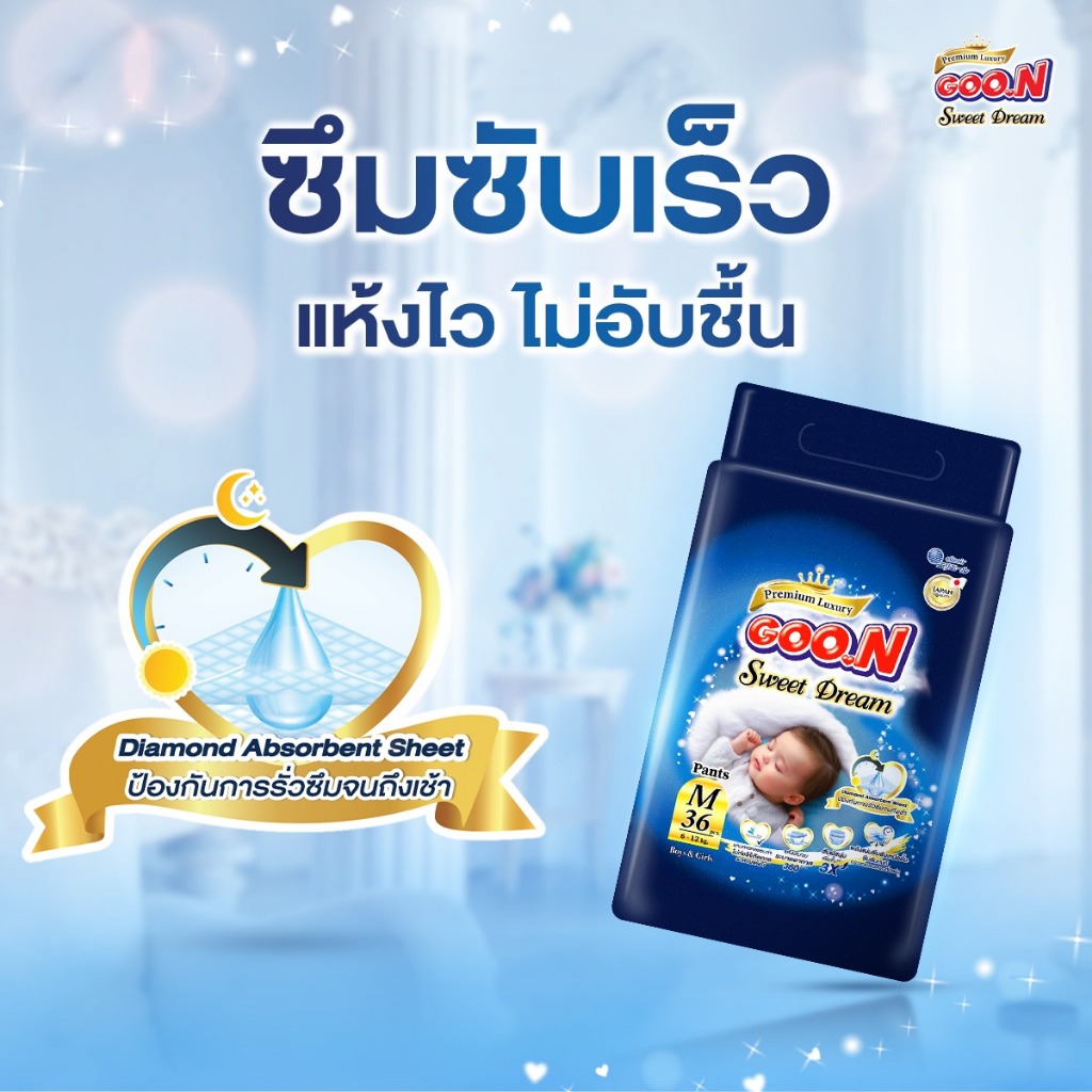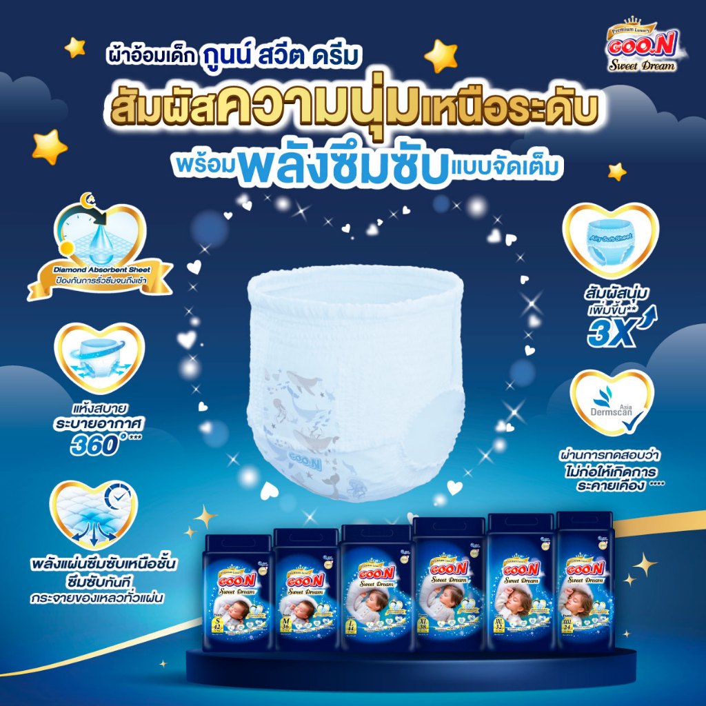 [แพ็ก] GOO.N Super Premium กูนน์ พรีเมียม ลัคชูรี่ สวีต ดรีม ผ้าอ้อมเด็กกูนน์ กางเกง ไซส์ XL 38 ชิ้น