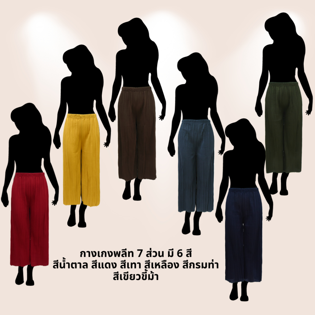 Hometab กางเกงพลีท 7 ส่วน กางเกงผู้หญิง
