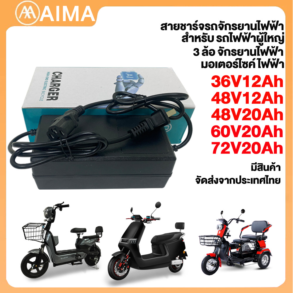 Aima สายชาร์จ จักรยานไฟฟ้า48V12Ah/20Ah 60V/72V20Ah สำหรับ รถไฟฟ้าผู้ใหญ่ 3ล้อ อะไหล่ electric bike ในสต็อกจัดส่งจากประเ