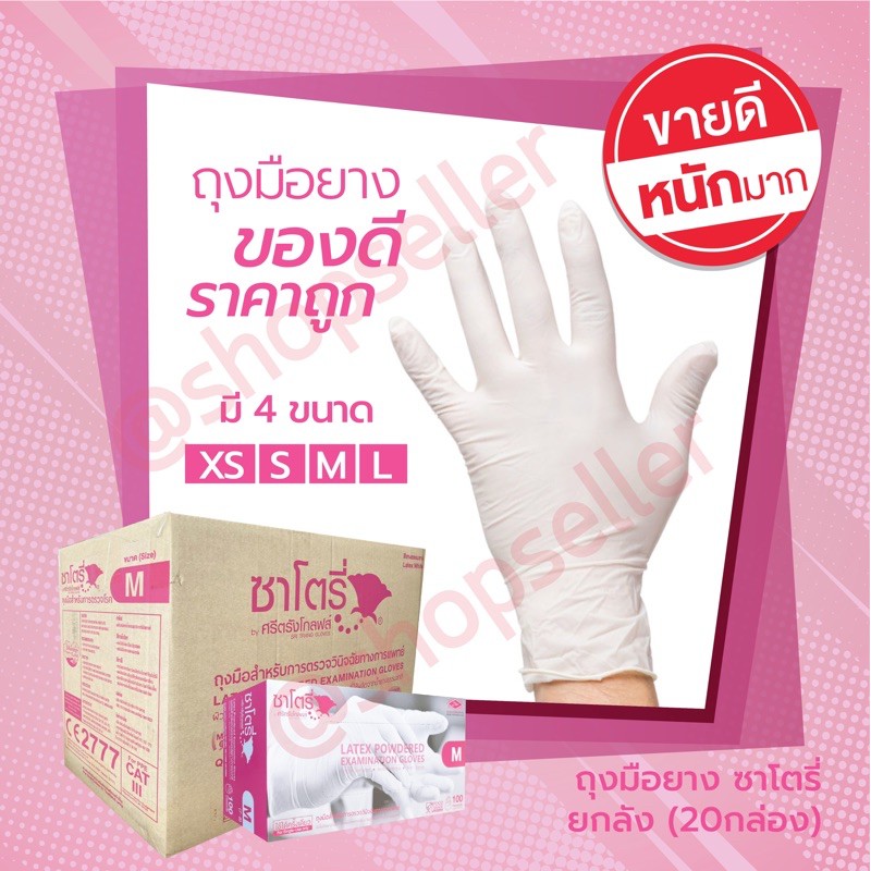 [ของแท้ ส่งไว ออกบิลได้!] Satory ถุงมือยางซาโตรี่ มีแป้ง ยกลัง 20 กล่อง กล่องชมพู แบบลัง