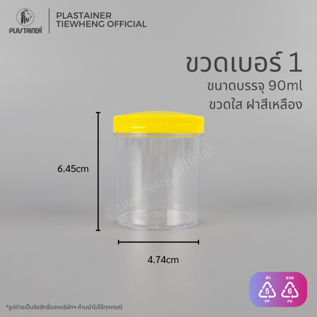 กระปุกพลาสติก ฝาสีเหลือง ขวดเบอร์ 1-7 (6.5-90 ml)(⚠️ 1 แพ็ค 100 ชิ้น) | Tiewheng.official