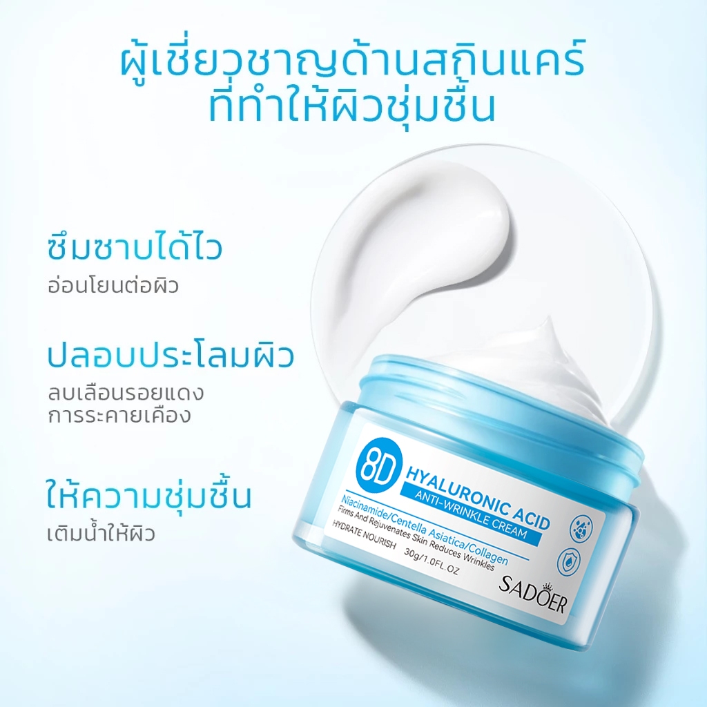 SADOER Anti-Aging Hydra Repair & Acne Control Cream ครีมลดริ้วรอย เติมน้ำล็อคความชุ่มชื้น พร้อมลดสิว เนื้อครีมบางเบา ซึบซาบเร็ว 30g