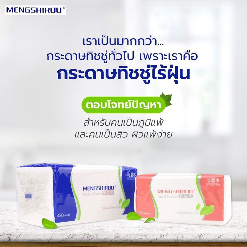 [ยกแพ็ค] Mengshirou กระดาษทิชชู่ไร้ฝุ่น หนา4ชั้น 4ห่อ (ห่อละ420แผ่น) สำหรับคนเป็นภูมิแพ้ ไวต่อฝุ่น