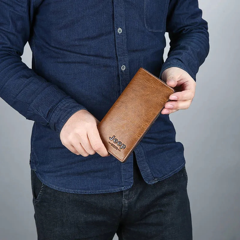 กระเป๋าสตางค์ใบยาวผู้ชายลำลอง ทำจากวัสดุ PU มีช่องภายในและช่องใส่บัตรหลายช่อง ตัวเลือกแรกสำหรับแฟชั่นและสไตล์ พกพาสะดวกเ