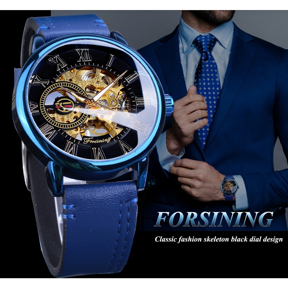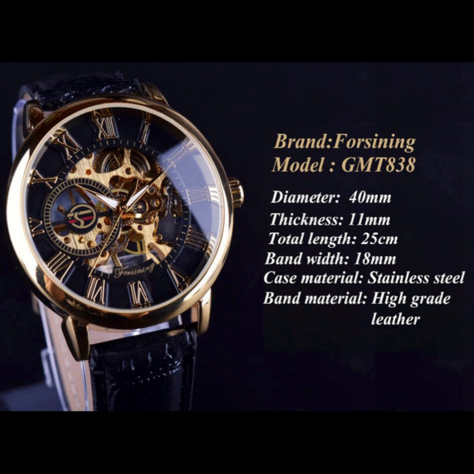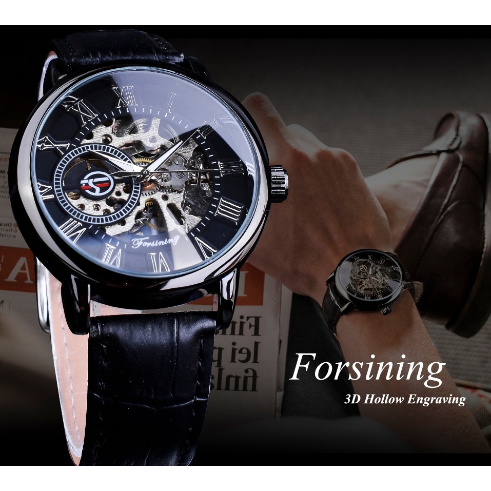 Forsining นาฬิกาข้อมือ สายหนัง ลายโลโก้ 3D หรูหรา สําหรับผู้ชาย ของขวัญผู้ชาย