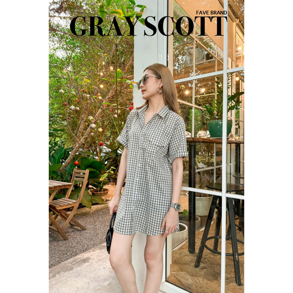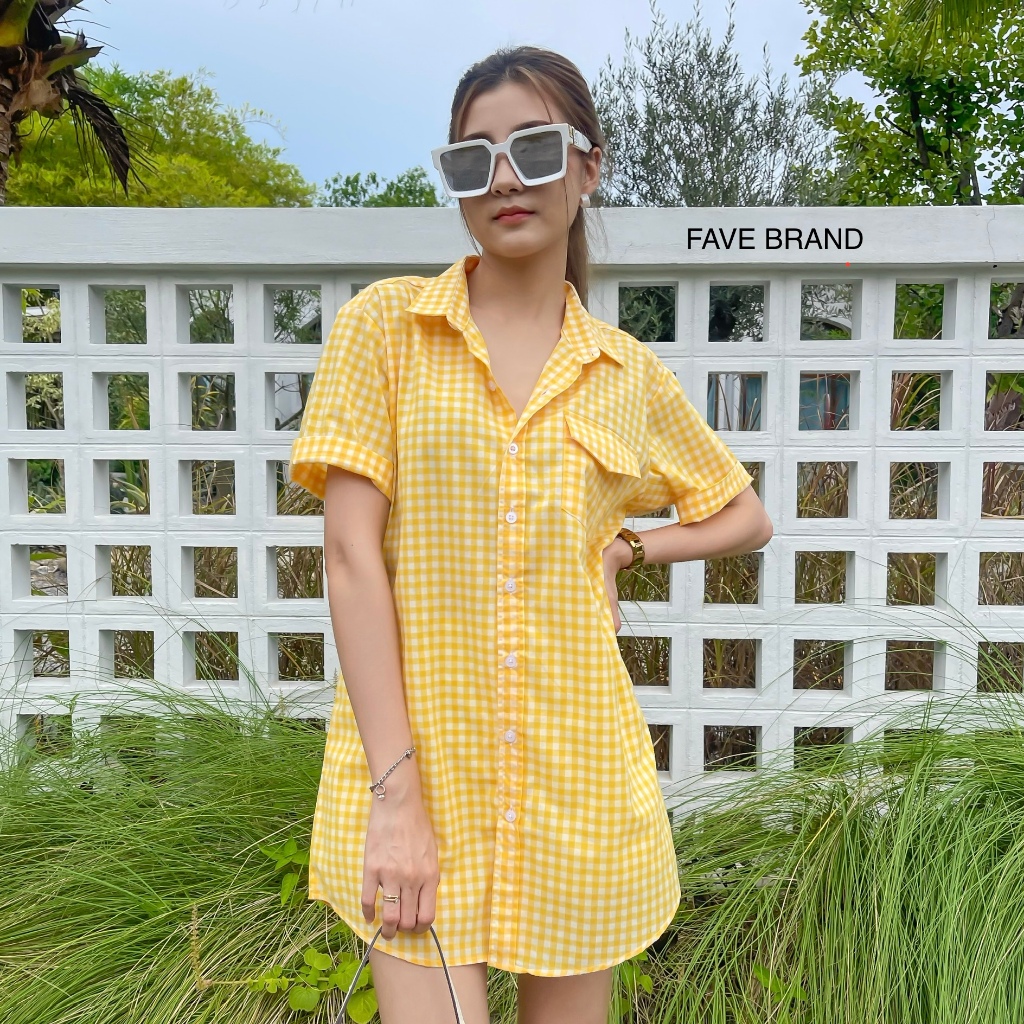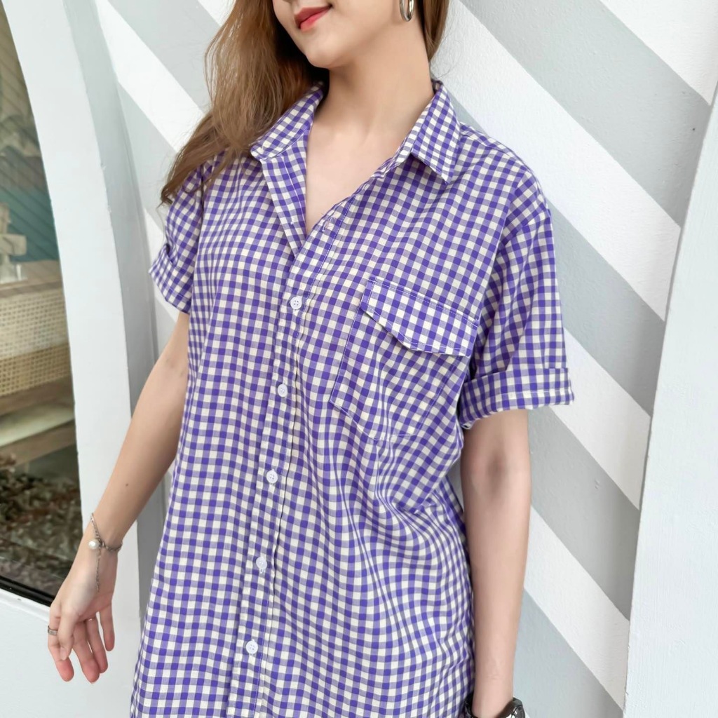 Fave Brand เดรสแขนสั้น สก๊อตกลาง ผ้าคอตตอน ฟรีไซส์