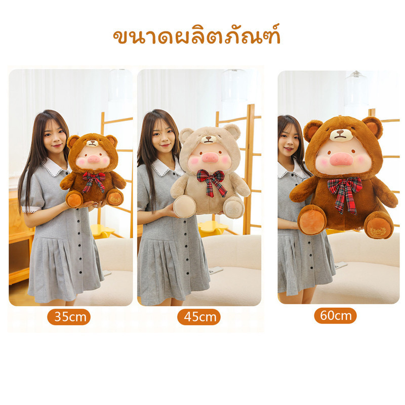 COD ตุ๊กตาหมู Teddy LuLu PIG ตุ๊กตาหมีหมู ของเล่นตุ๊กตามีหมวก ขนฟูน่ารักนุ่มนิ่ม ขนาด 35/45 ซม